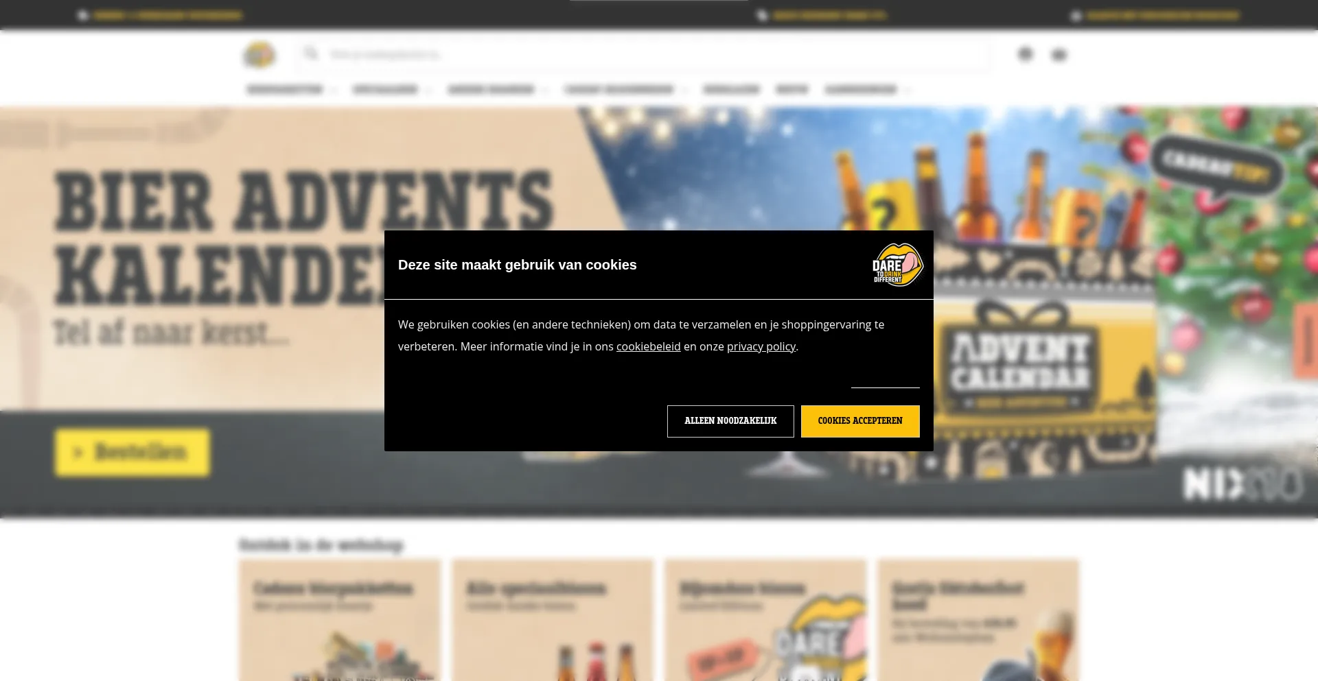 The website implements cookie consent mechanisms in compliance with privacy regulations such as GDPR or CCPA. This demonstrates that daretodrinkdifferent.nl adheres to data protection standards and provides users with control over personal data collection practices.