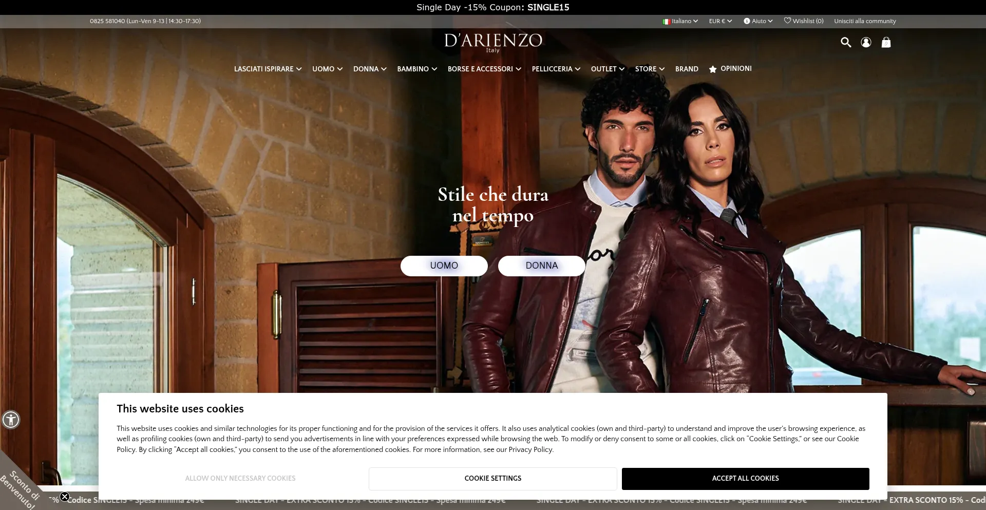 The website implements cookie consent mechanisms in compliance with privacy regulations such as GDPR or CCPA. This demonstrates that darienzocollezioni.it adheres to data protection standards and provides users with control over personal data collection practices.