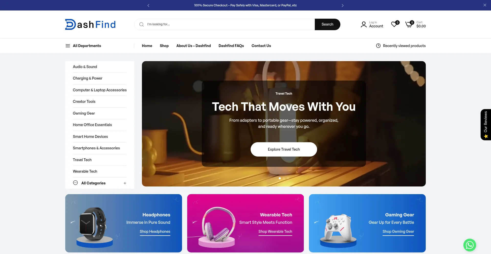 The dashfind.com website utilizes free e-commerce platform solutions, which may indicate cost-conscious operations but could also suggest limitations in security features, customer support, or advanced functionality compared to enterprise-grade solutions.