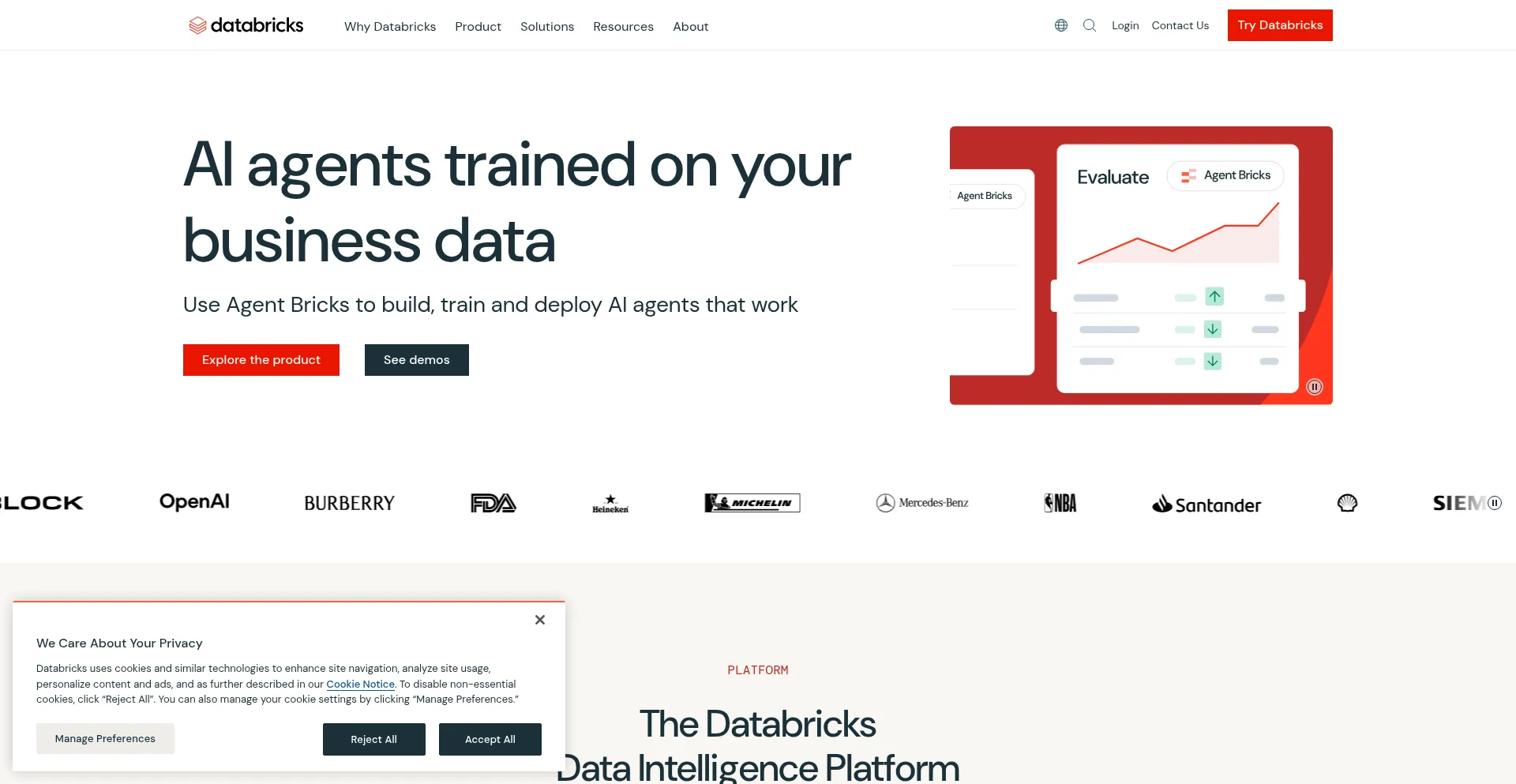 The website implements cookie consent mechanisms in compliance with privacy regulations such as GDPR or CCPA. This demonstrates that databricks.com adheres to data protection standards and provides users with control over personal data collection practices.