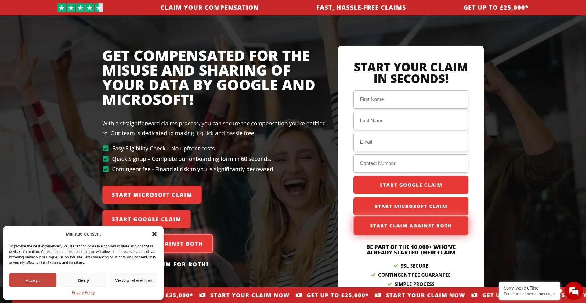 The dataclaim.co.uk website implements data collection forms that may request personal information including names, email addresses, phone numbers, or other sensitive details. Users should verify the legitimacy of it and review privacy policies before submitting personal data.