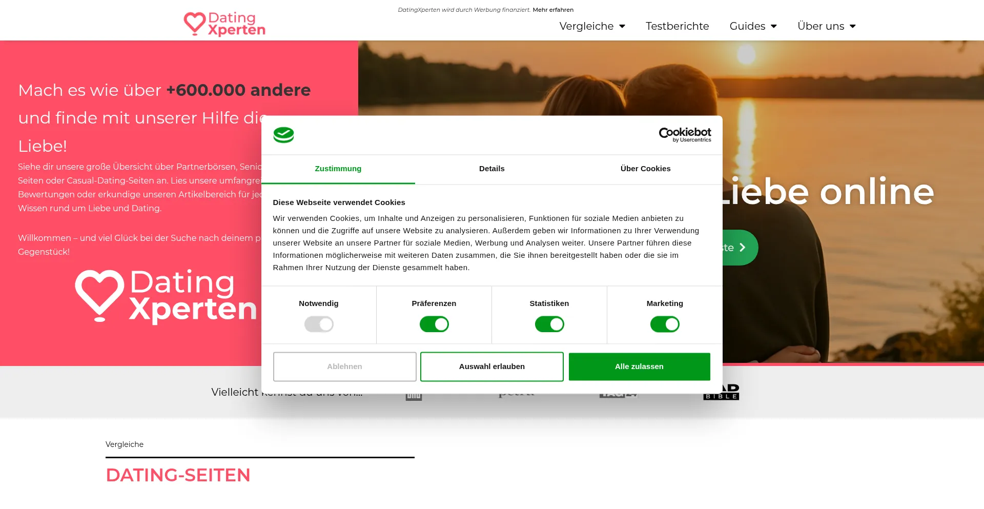 The website implements cookie consent mechanisms in compliance with privacy regulations such as GDPR or CCPA. This demonstrates that datingxperten.de adheres to data protection standards and provides users with control over personal data collection practices.