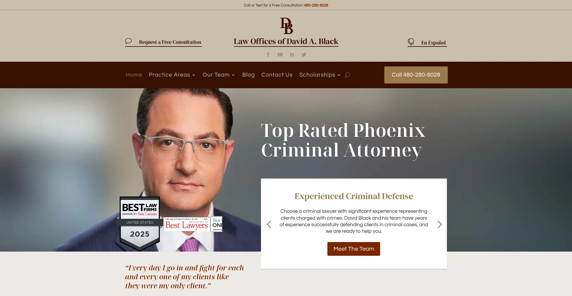 For personal attention and legal advice you can count on, contact a Phoenix criminal defense lawyer at the Law Offices of David A. Black at 480-280-8028. Free consultation.