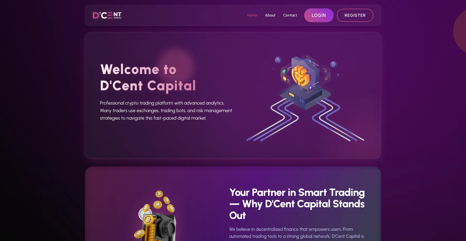 The dcentcapital.com website provides financial services including investment management, wealth advisory, or financial planning solutions. Services may encompass portfolio management, investment opportunities, financial consulting, or asset growth strategies for individual and institutional clients.