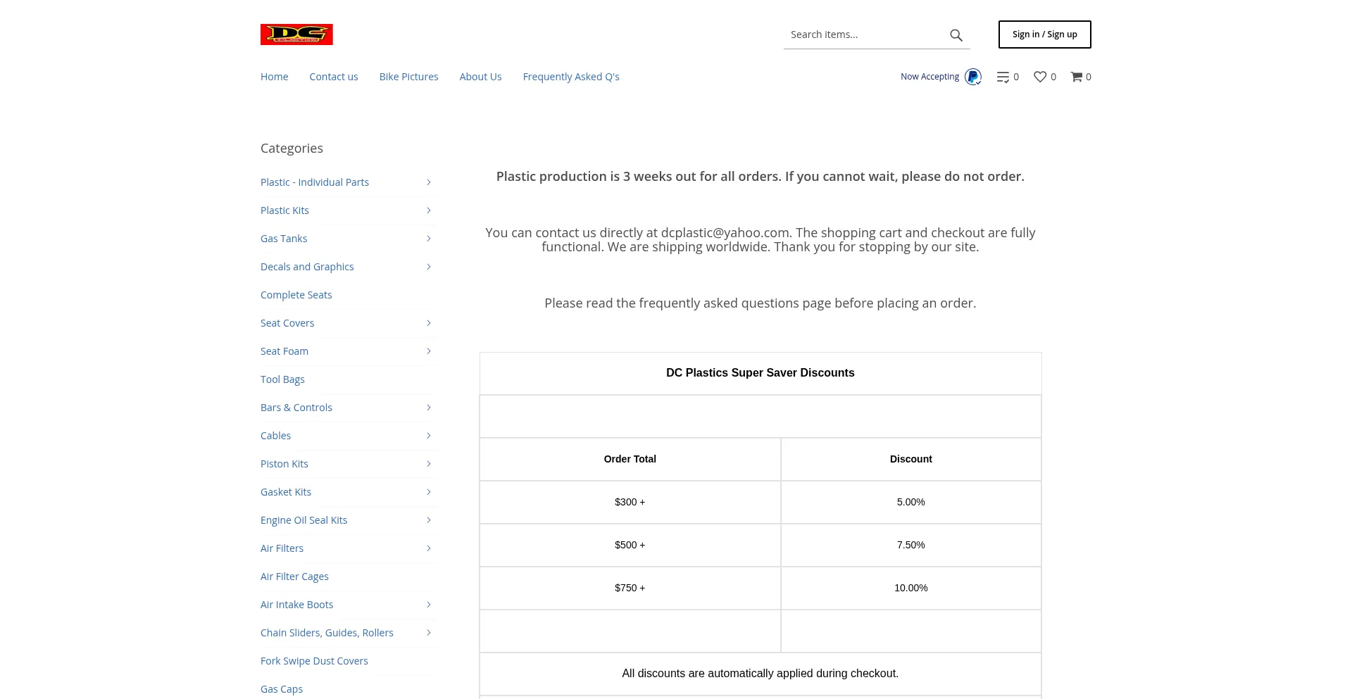 Plastic production is 3 weeks out for all orders. If you cannot wait, please do not order. You can contact us directly at [email protected]. The shopping cart and checkout are...