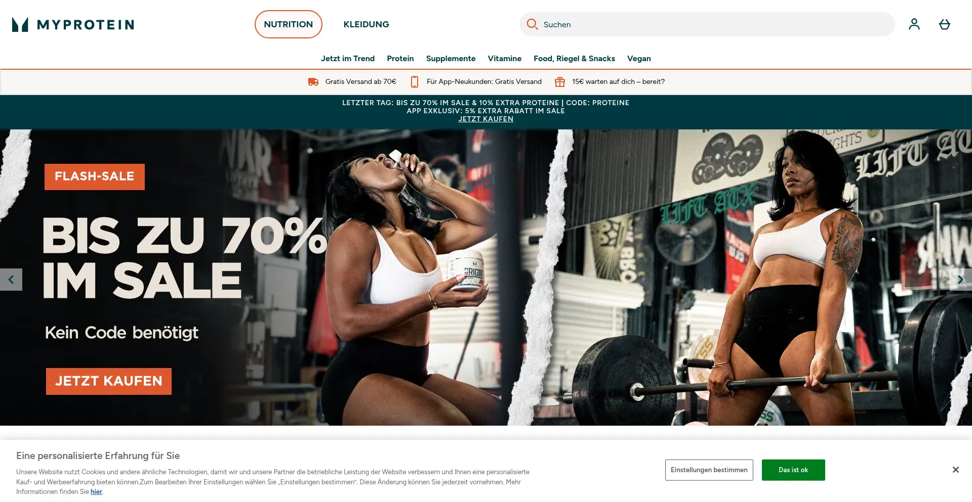 The website implements cookie consent mechanisms in compliance with privacy regulations such as GDPR or CCPA. This demonstrates that de.myprotein.com adheres to data protection standards and provides users with control over personal data collection practices.