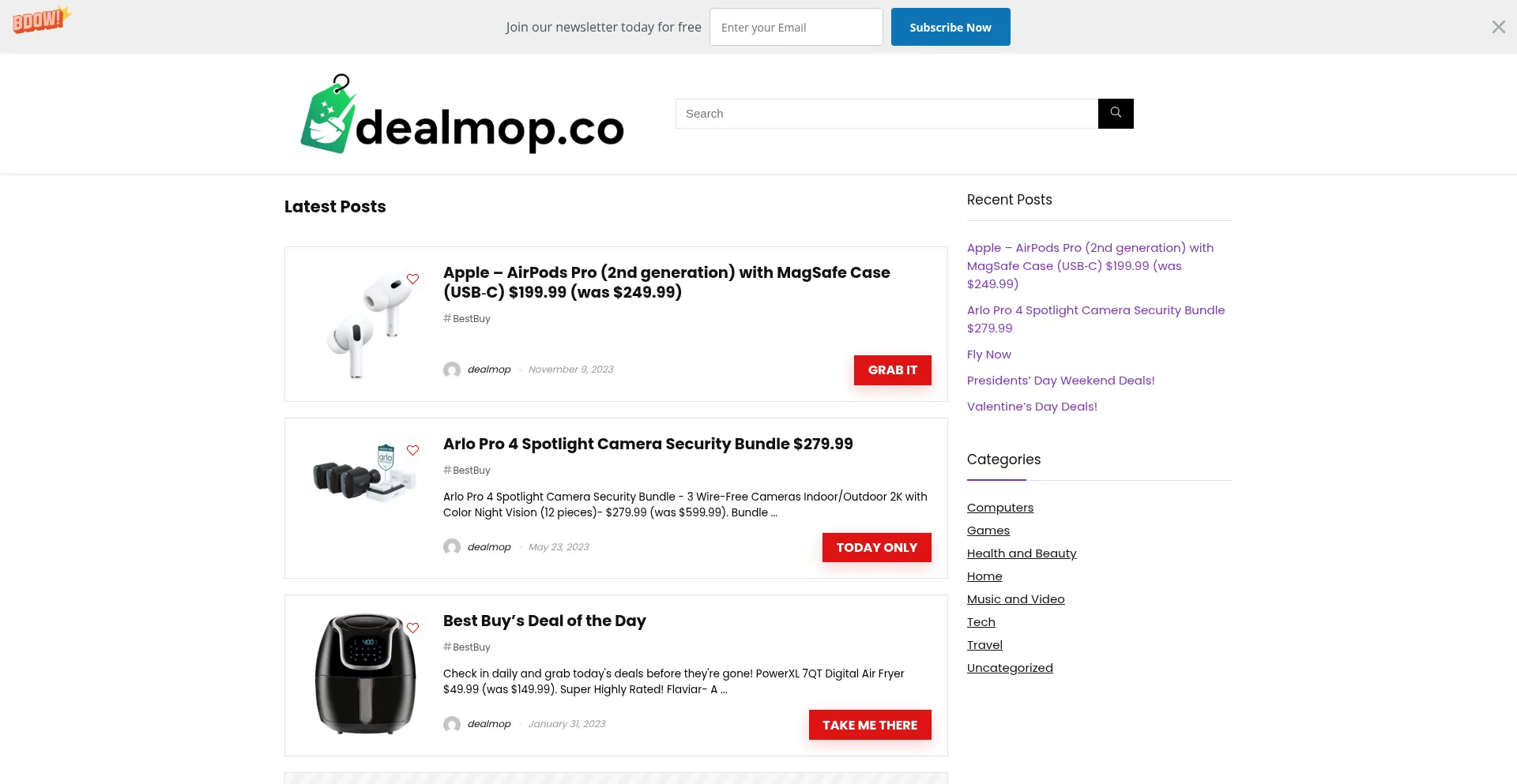The website leverages popular product names and brands to attract traffic and generate user interest. These products may be offered through promotional campaigns or discount strategies designed to increase visitor engagement and conversion rates for dealmop.co.