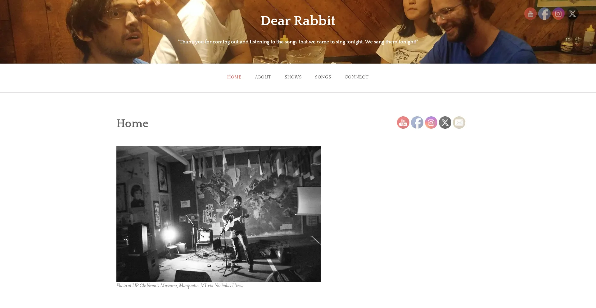 Dear Rabbit – "Thank you for coming out and listening to the songs that we came to sing tonight. We sang them tonight!"