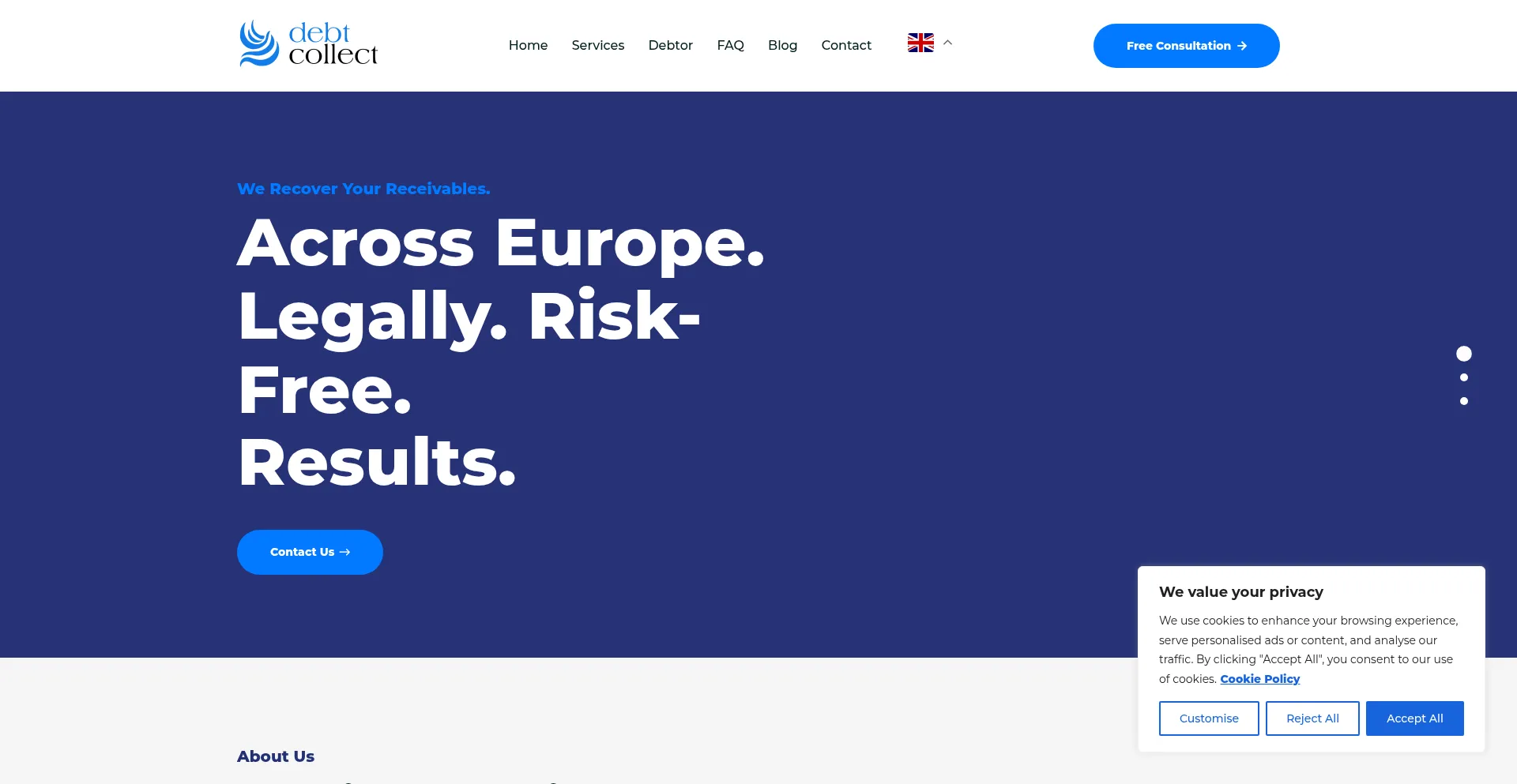 The website implements cookie consent mechanisms in compliance with privacy regulations such as GDPR or CCPA. This demonstrates that debtcollect.net adheres to data protection standards and provides users with control over personal data collection practices.