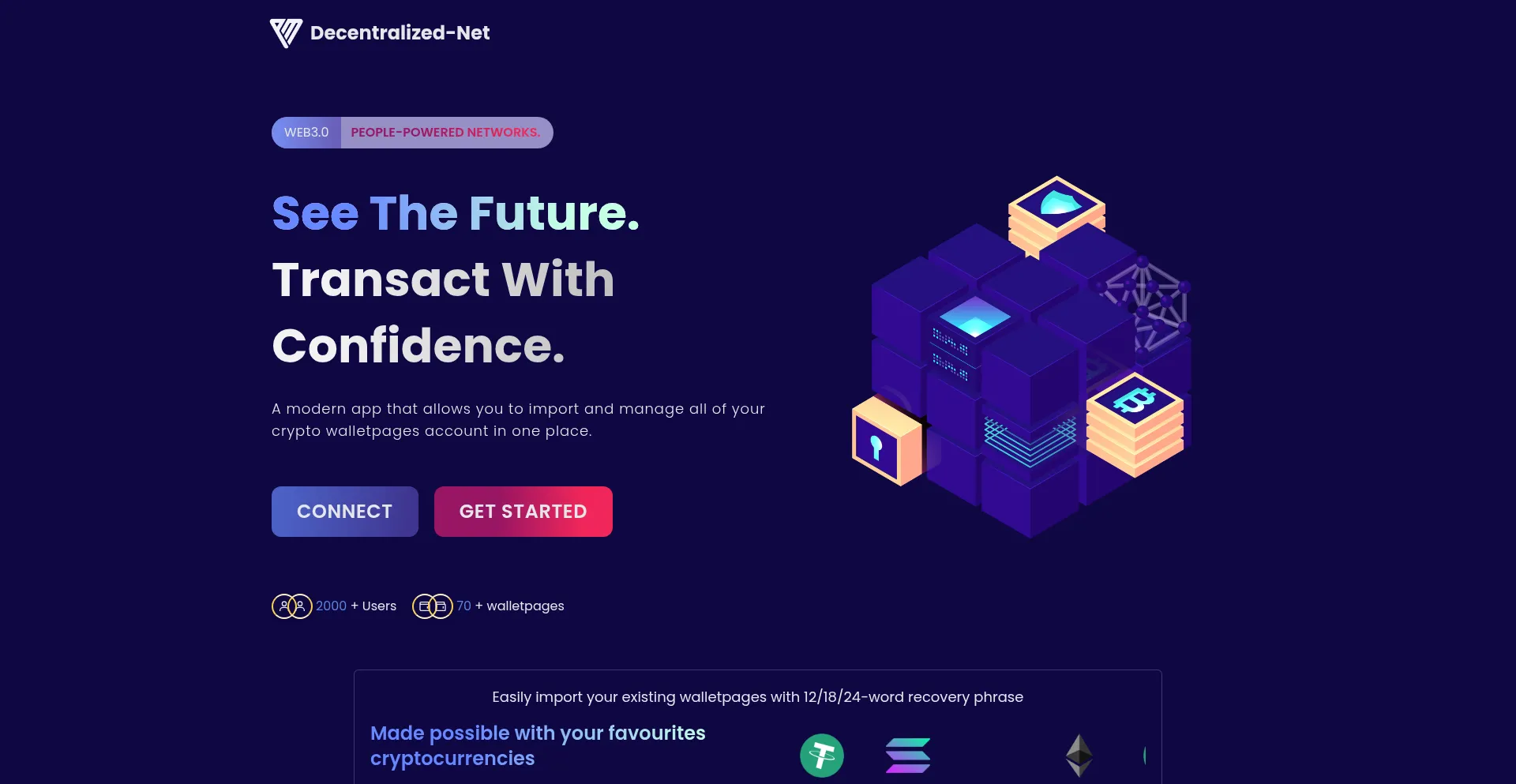 A modern app that allows you to import and manage all of your crypto walletpages account in one place.