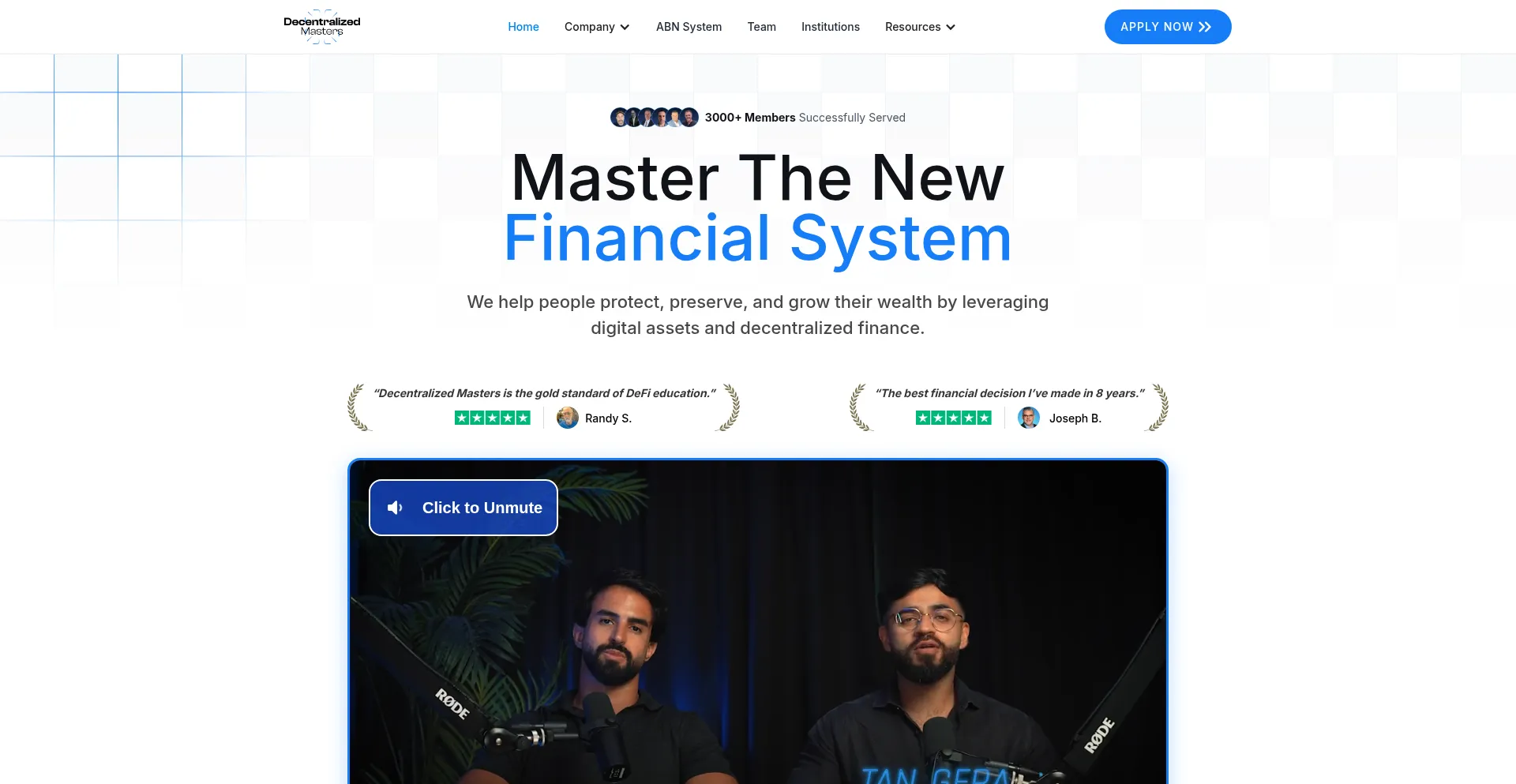 Decentralized Masters delivers institutional-grade training, private mentorship, and daily education to help investors master decentralized finance and secure their legacy. We�...