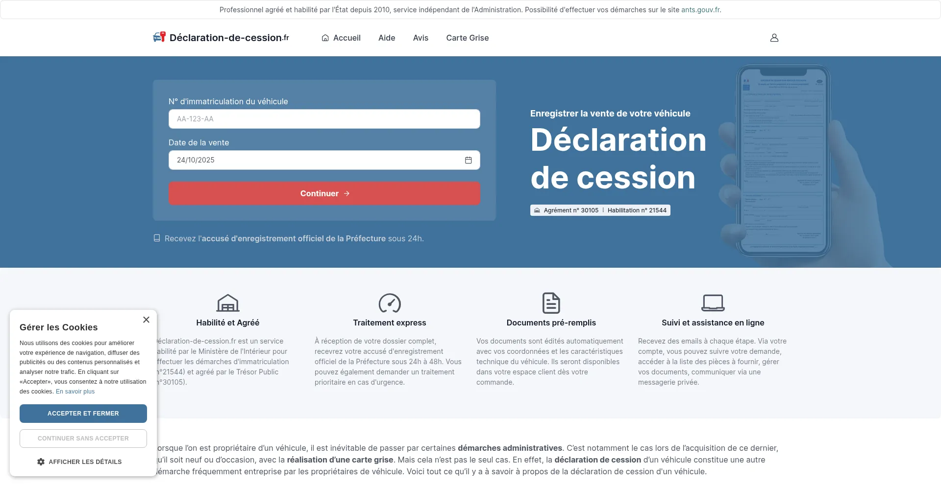 Enregistrer la cession ou vente de votre véhicule en ligne avec declaration-de-cession.fr - Simple, Rapide et Sécurisé.