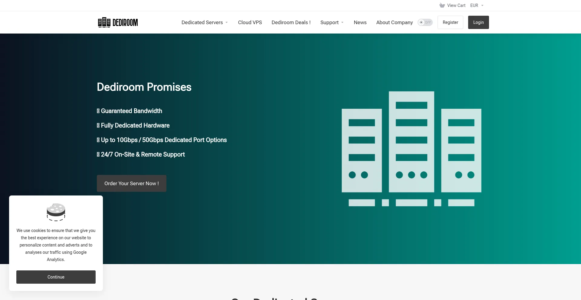 The website implements cookie consent mechanisms in compliance with privacy regulations such as GDPR or CCPA. This demonstrates that dediroom.com adheres to data protection standards and provides users with control over personal data collection practices.