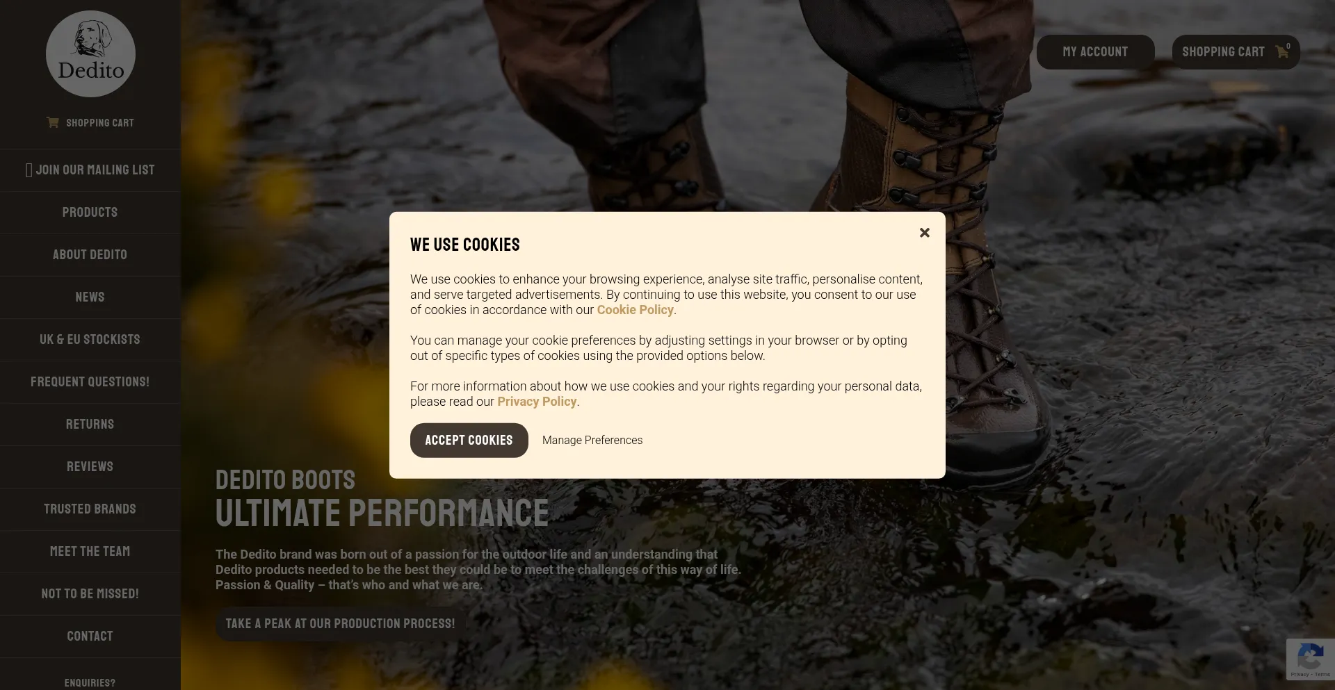 The website implements cookie consent mechanisms in compliance with privacy regulations such as GDPR or CCPA. This demonstrates that deditoboots.com adheres to data protection standards and provides users with control over personal data collection practices.