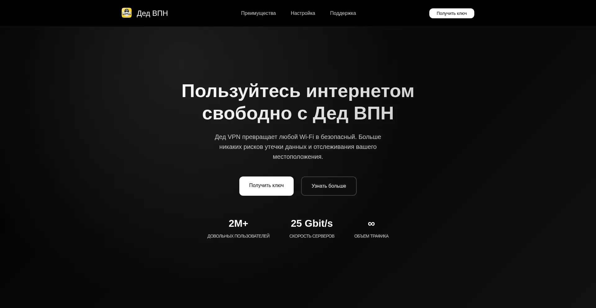 Дед VPN – новое поколение ВПН-сервисов. Мгновенная скорость, безлимитный трафик, протокол VLESS, Tik-Tok...
