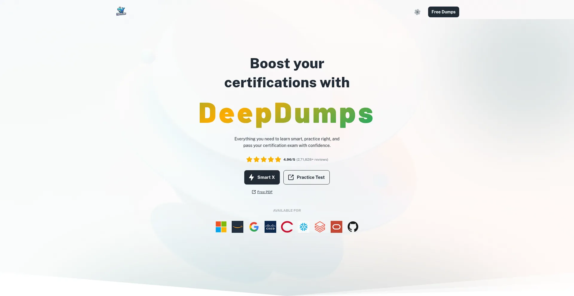 Pass IT certification exams faster with DeepDumps — verified, up-to-date 2025 exam dumps, realistic practice tests, and SmartX AI study assistant for AWS, Microsoft, Cisco, Co...