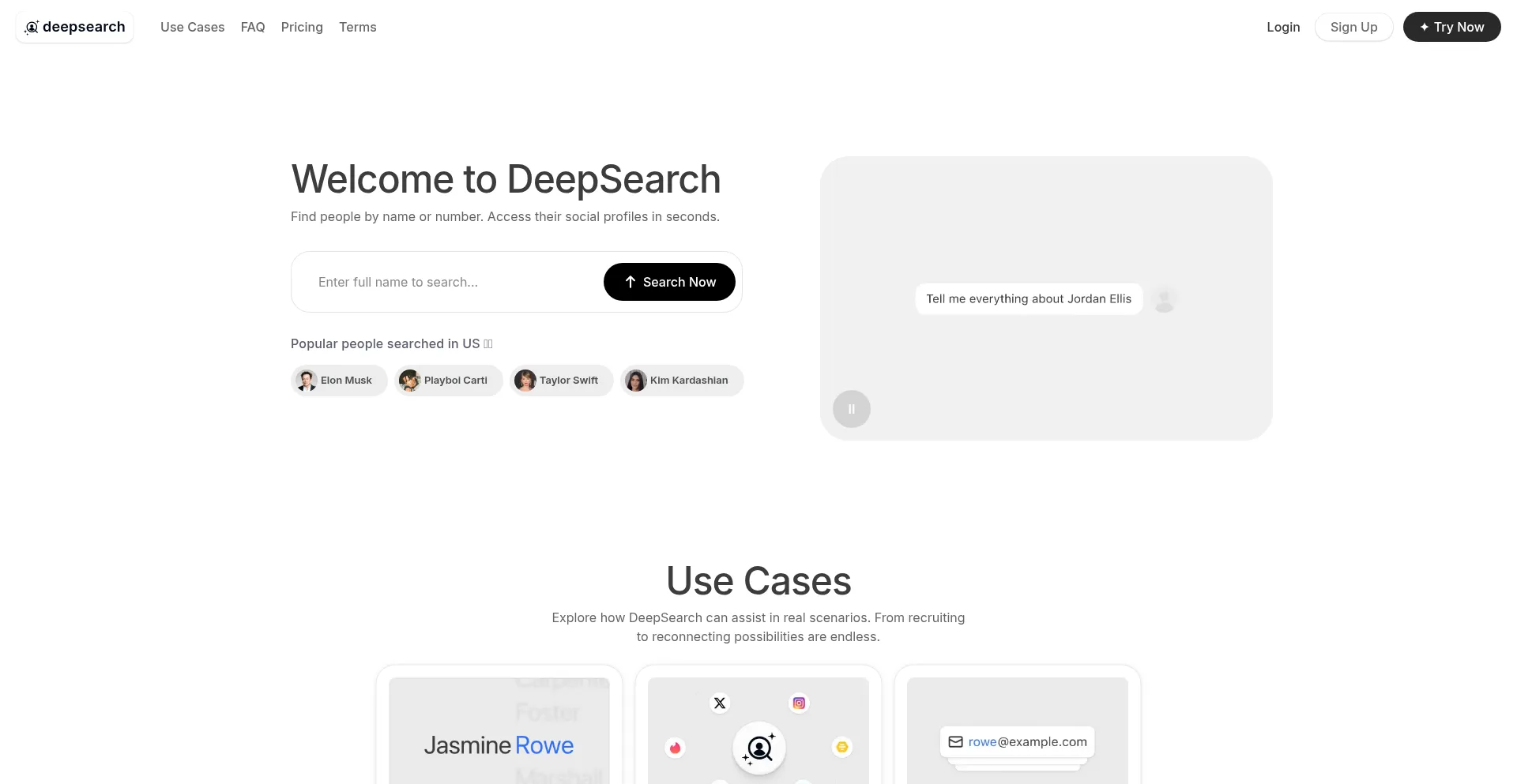 The deepsearchai.co website implements data collection forms that may request personal information including names, email addresses, phone numbers, or other sensitive details. Users should verify the legitimacy of it and review privacy policies before submitting personal data.