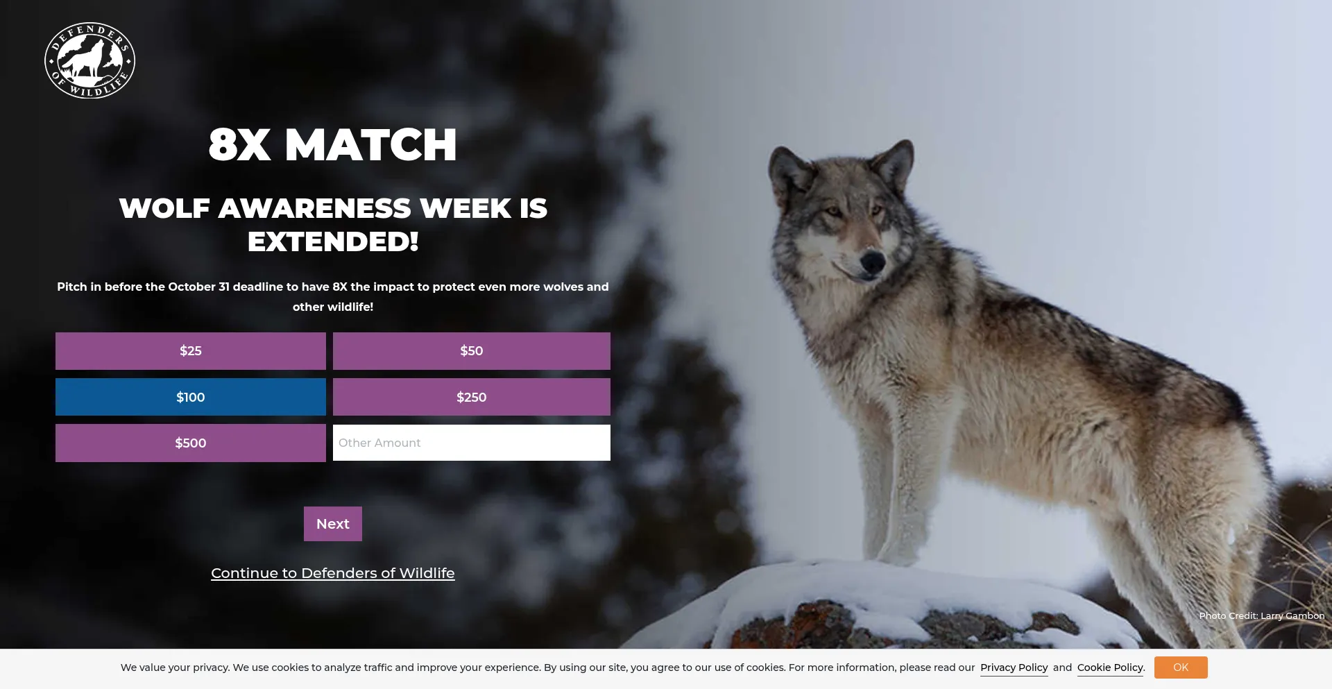 We’re 8X matching every gift received to strengthen our life-saving defense of wolves! Every gift received by the October 31 deadline will be 8X MATCHED to protect even more w...