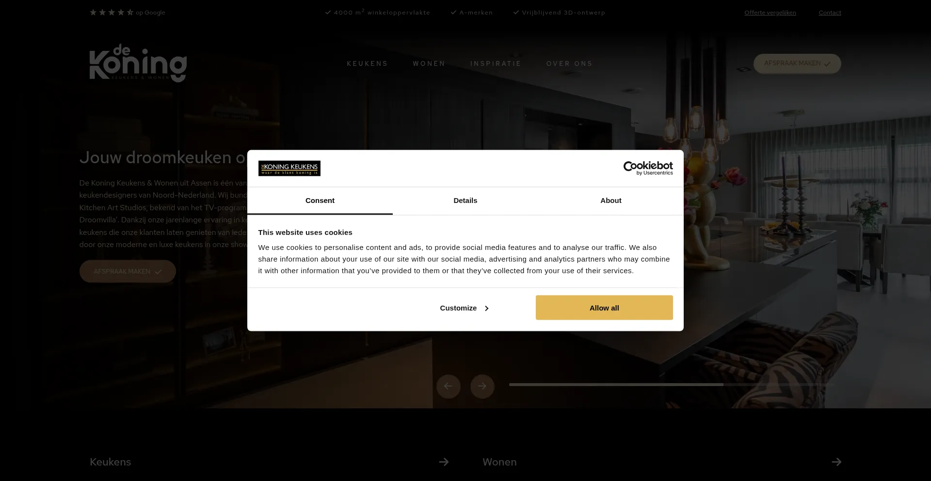 The website implements cookie consent mechanisms in compliance with privacy regulations such as GDPR or CCPA. This demonstrates that dekoningkeukens.nl adheres to data protection standards and provides users with control over personal data collection practices.