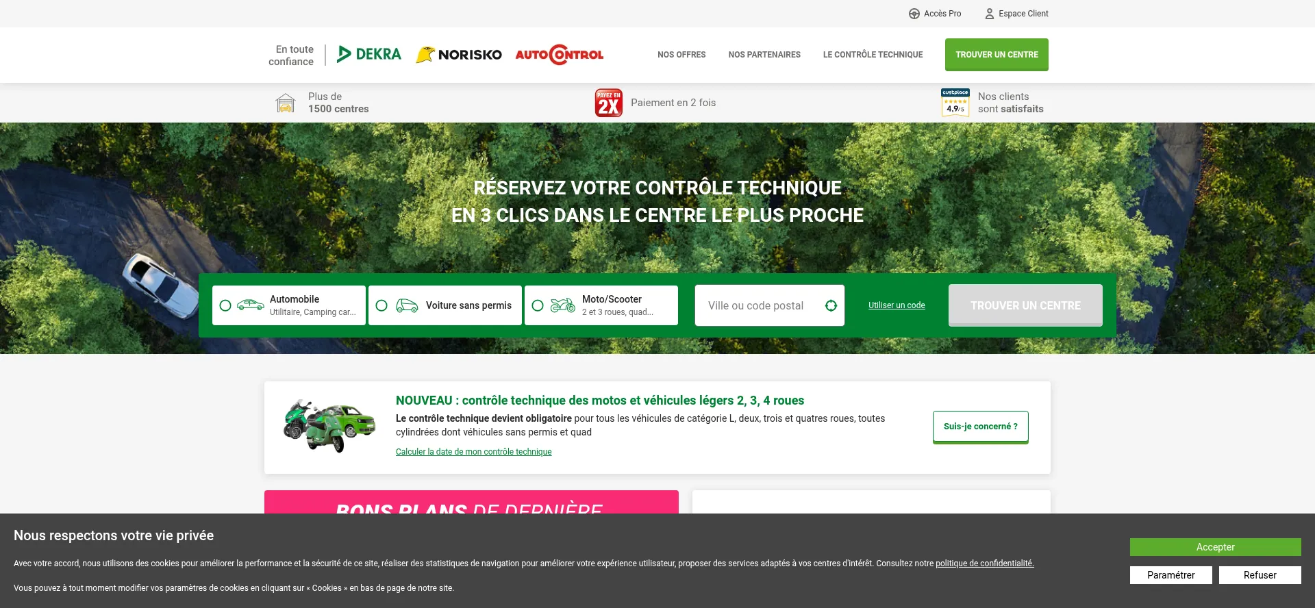 Retrouvez l'ensemble des centres de contrôle technique DEKRA, NORISKO et AUTOCONTROL, leader en France. Trouvez un centre près de chez vous, et réservez en ligne 24h/24.
