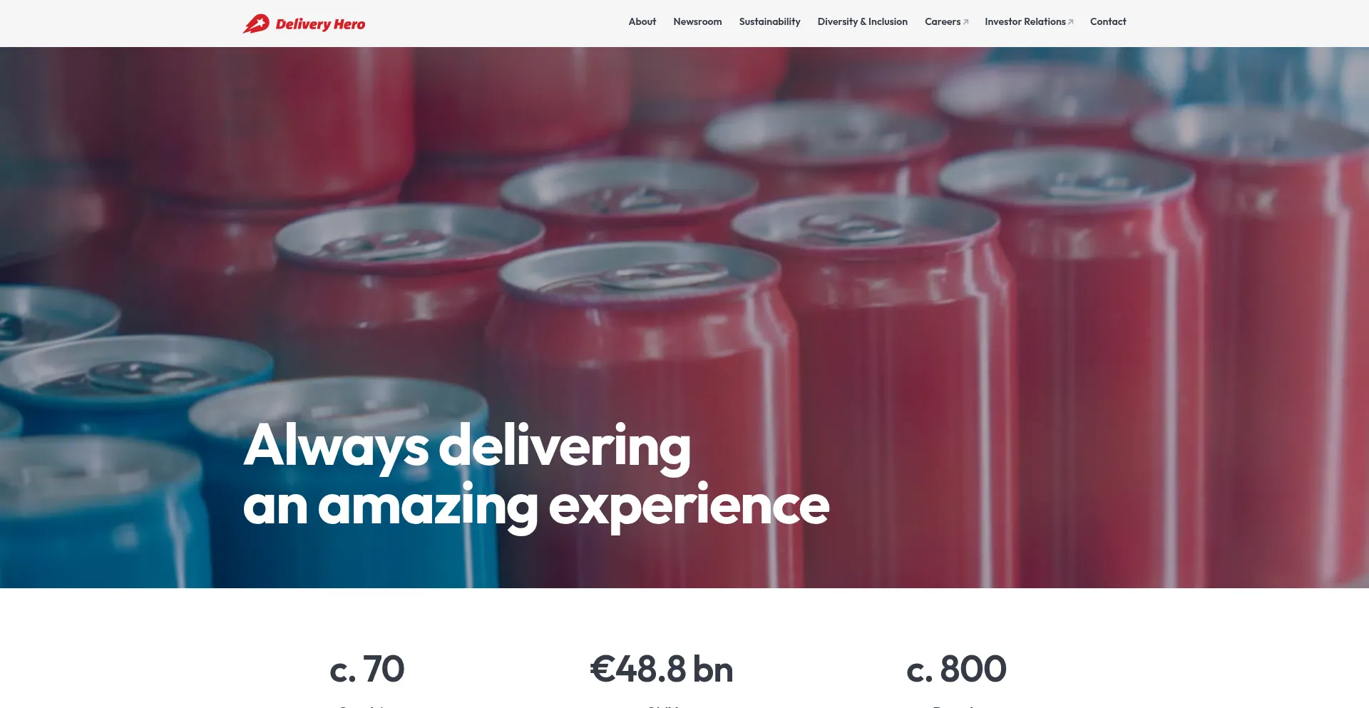 The deliveryhero.com website uses Google Tag Manager to add and update tracking tags on its website.
