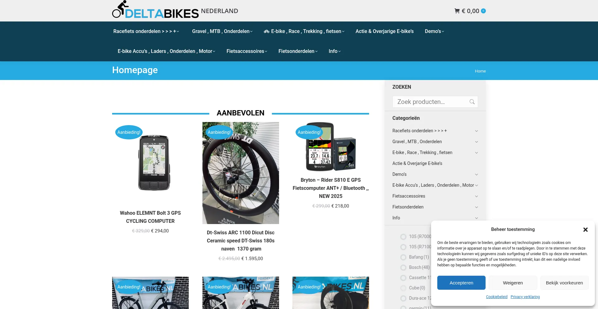 Analysis indicates that deltabikes.nl operates as an e-commerce platform facilitating online transactions for goods or services. The website implements shopping cart functionality, payment processing systems, and product catalog features typical of commercial retail operations.