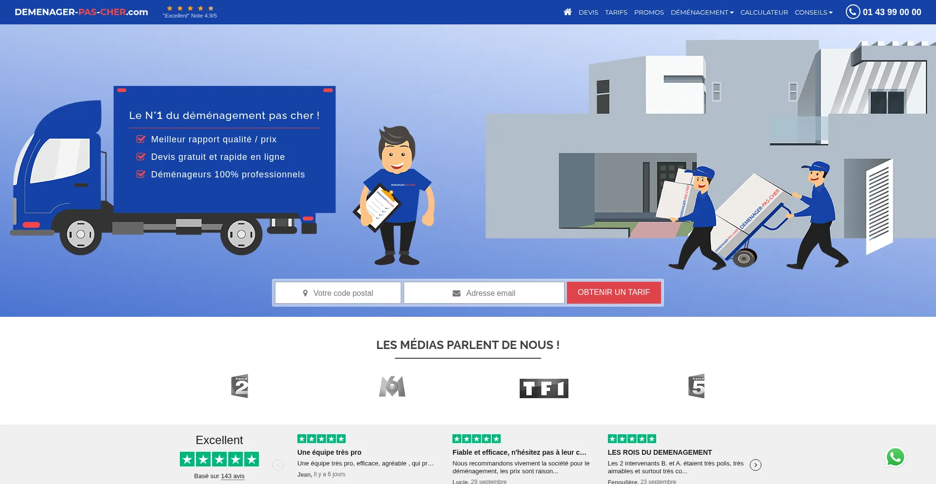 demenager-pas-cher.com has a good Trustpilot score (4.9) based on 143 reviews, indicating a high level of trust from customers. It is a good sign of legitimacy!