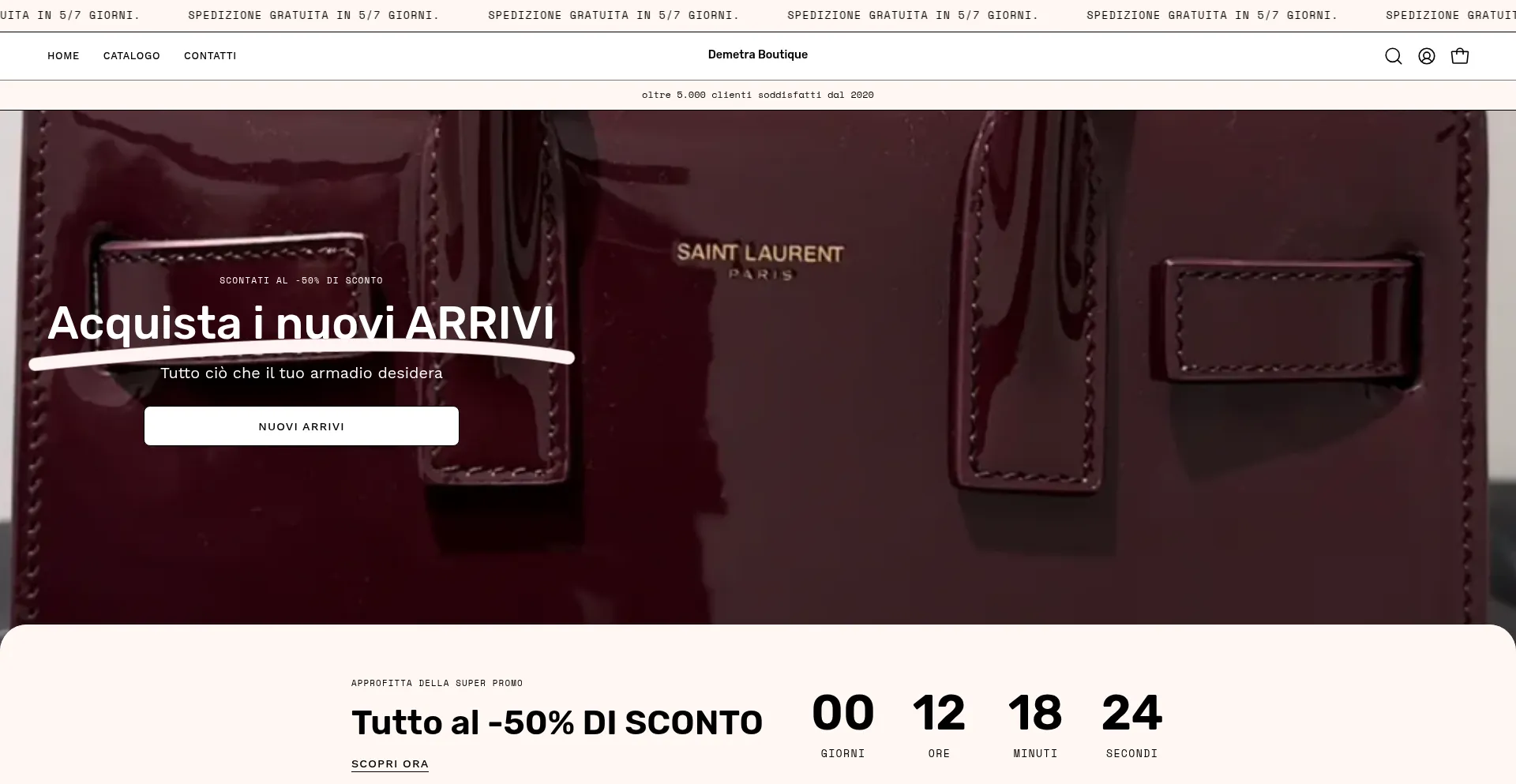 The demetraaboutique.it website utilizes free e-commerce platform solutions, which may indicate cost-conscious operations but could also suggest limitations in security features, customer support, or advanced functionality compared to enterprise-grade solutions.