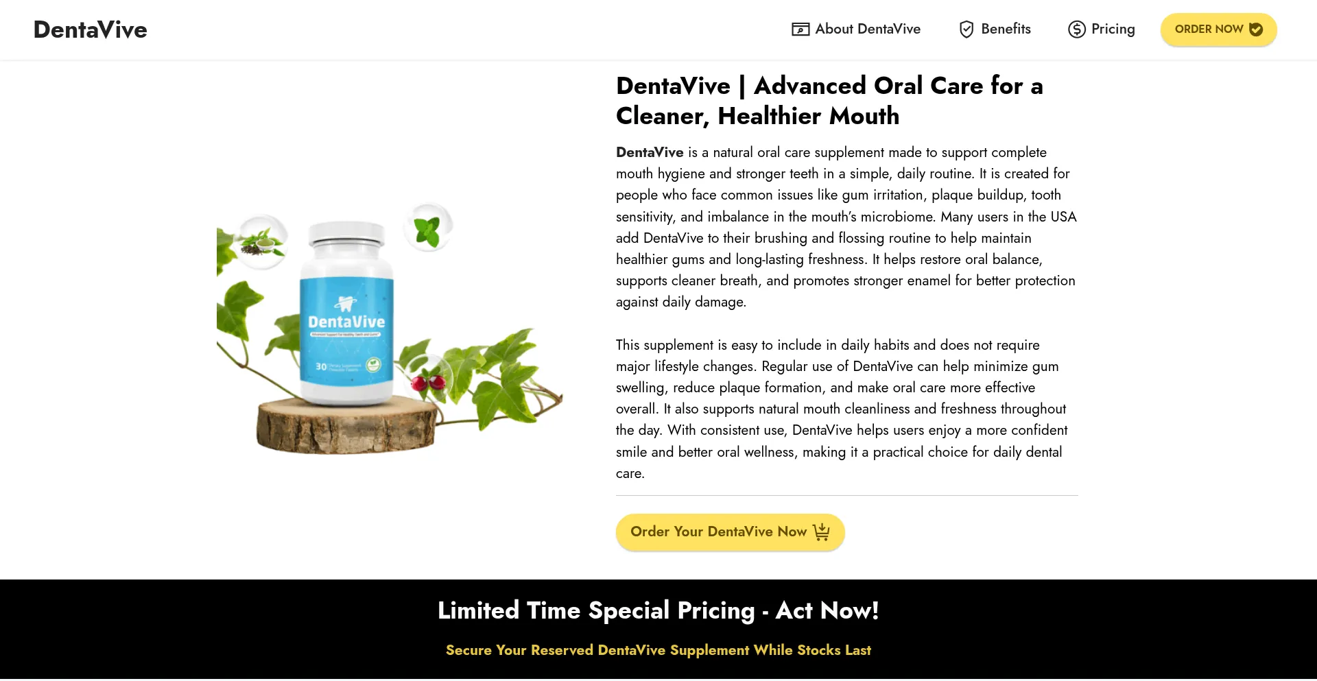 DentaVive promotes strong teeth, fresh breath, and healthy gums naturally. Boost your oral health today — order DentaVive now for a confident smile!