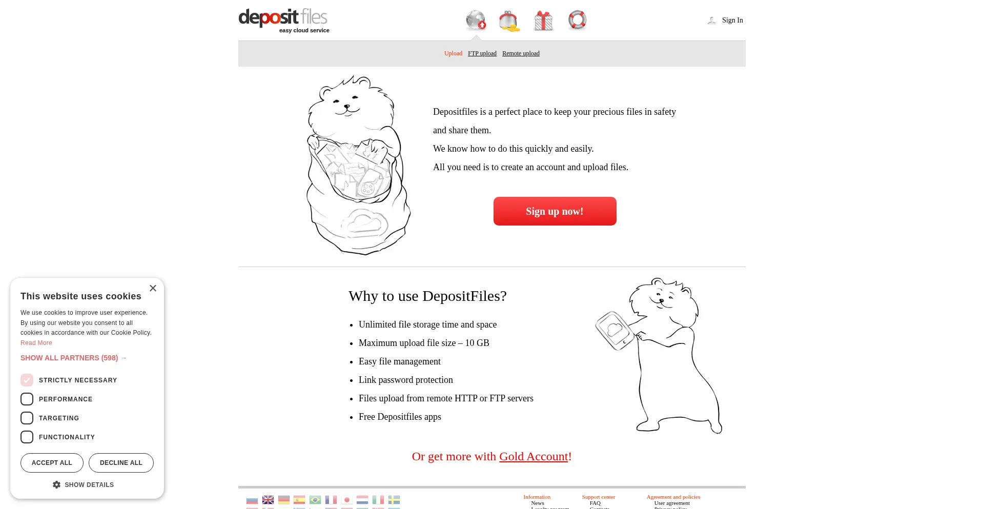 The website implements cookie consent mechanisms in compliance with privacy regulations such as GDPR or CCPA. This demonstrates that depositfiles.org adheres to data protection standards and provides users with control over personal data collection practices.