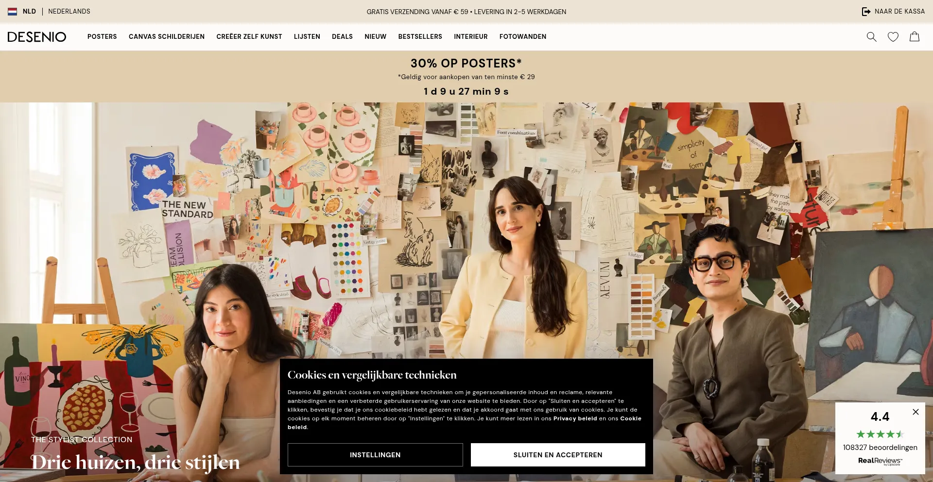 Analysis indicates that desenio.nl operates as an e-commerce platform facilitating online transactions for goods or services. The website implements shopping cart functionality, payment processing systems, and product catalog features typical of commercial retail operations.