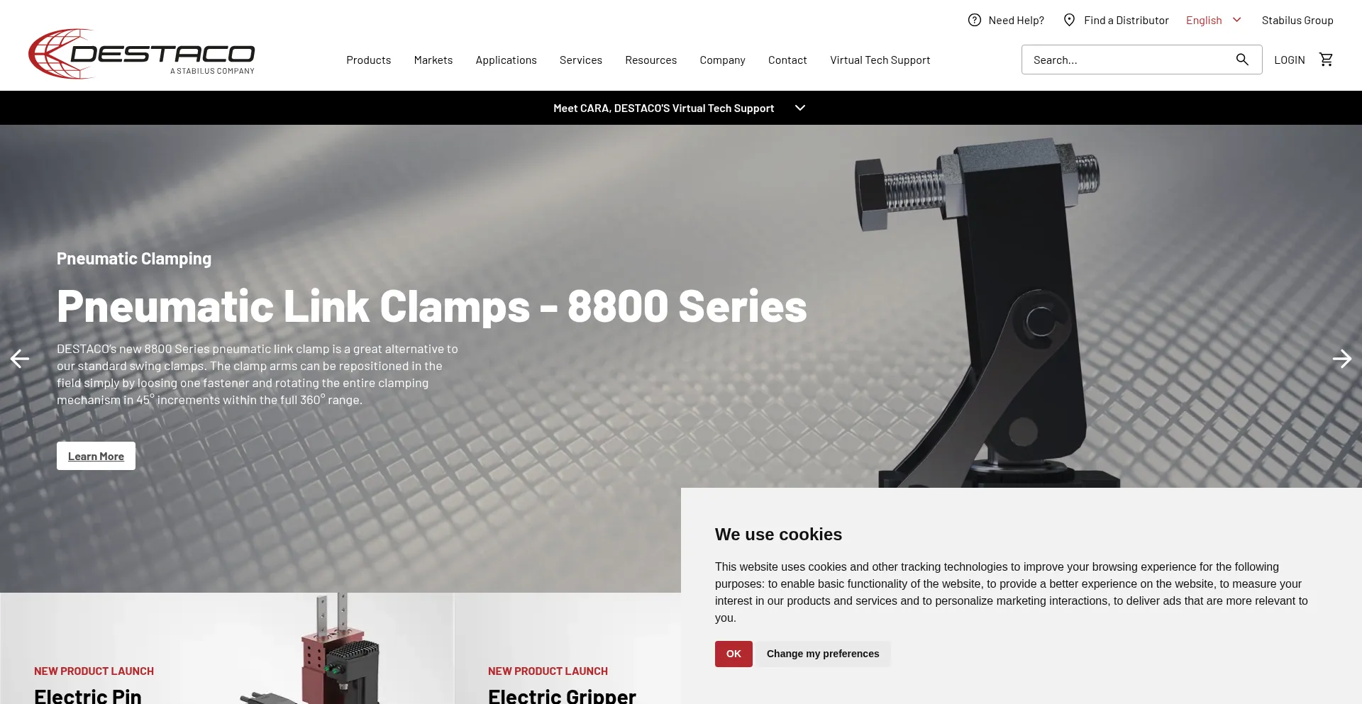 The website implements cookie consent mechanisms in compliance with privacy regulations such as GDPR or CCPA. This demonstrates that destaco.com adheres to data protection standards and provides users with control over personal data collection practices.