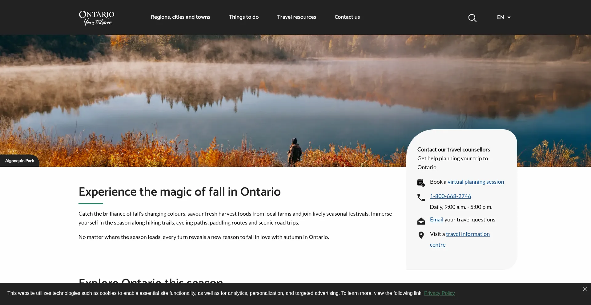 The official tourism website of the province of Ontario in Canada. Find all the information you will need to plan your next visit.
