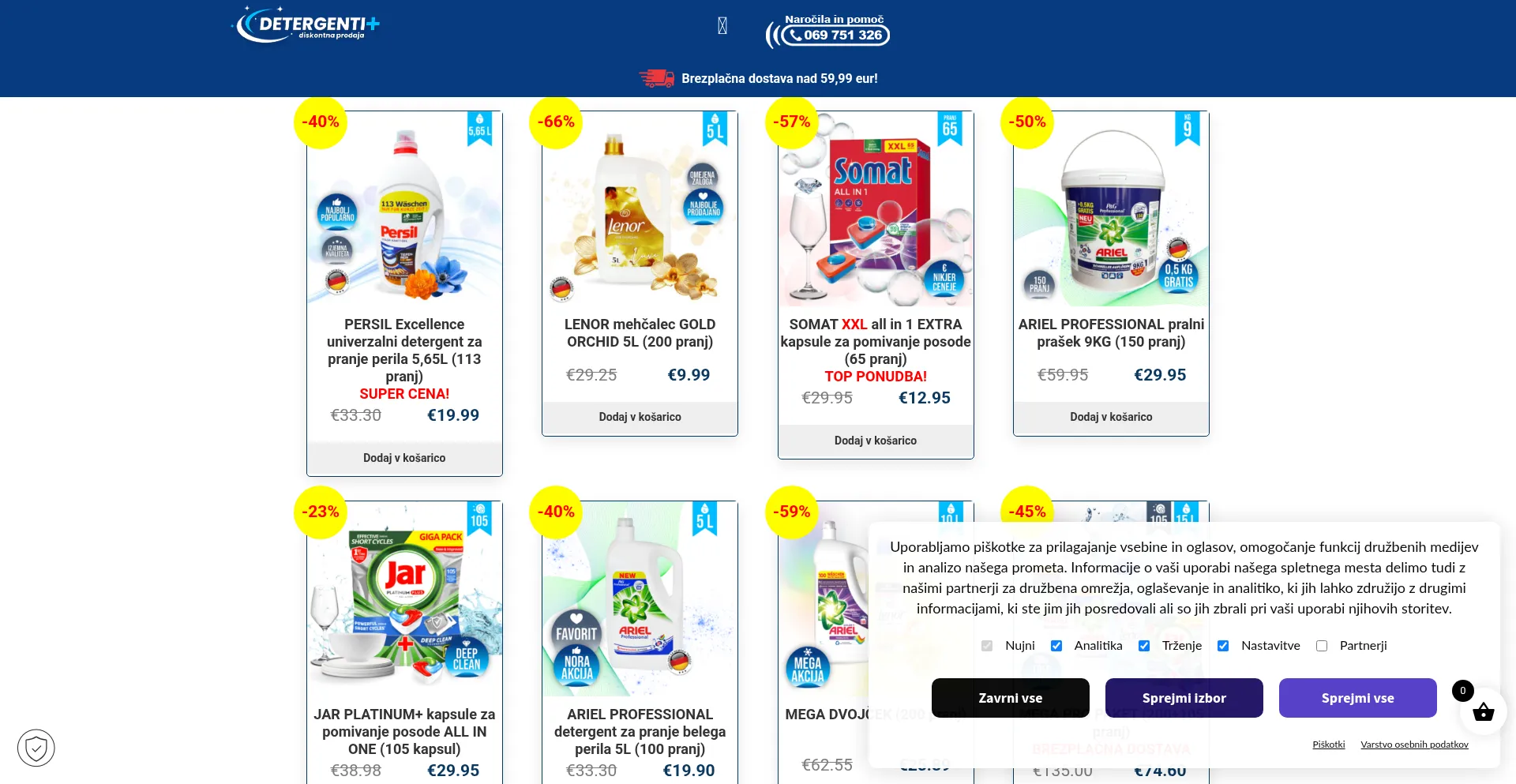 Analysis indicates that detergenti-plus.si operates as an e-commerce platform facilitating online transactions for goods or services. The website implements shopping cart functionality, payment processing systems, and product catalog features typical of commercial retail operations.