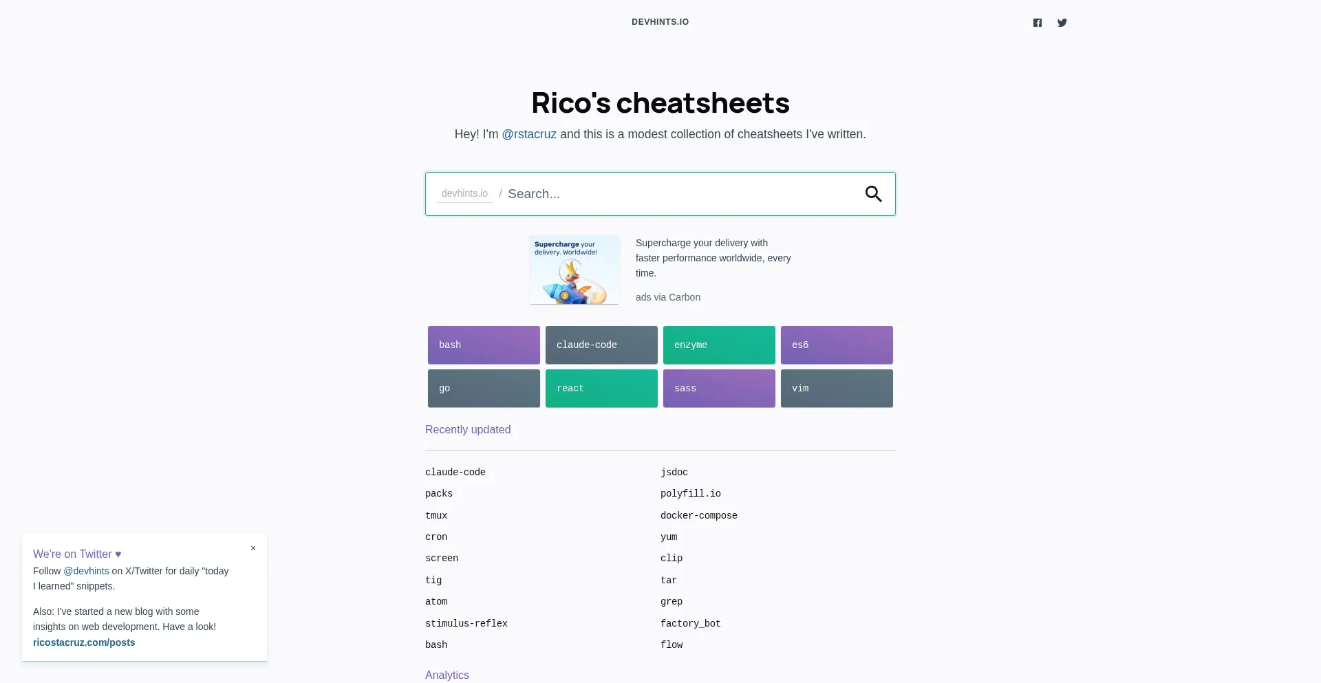 www.googletagmanager.com srv.carbonads.net devhints.io twitter.com github.com pubsrv.devhints.io www.facebook.com ricostacruz.com carbonads.net static.cloudflareinsights.com