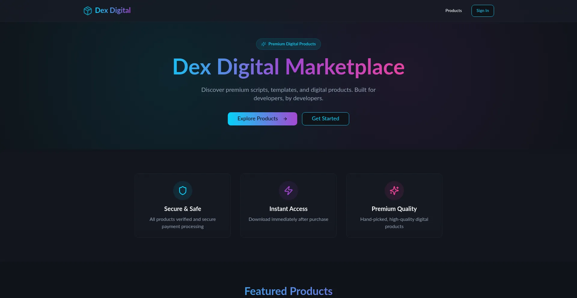 Discover premium scripts, templates, and digital products. Your futuristic digital marketplace for developers.