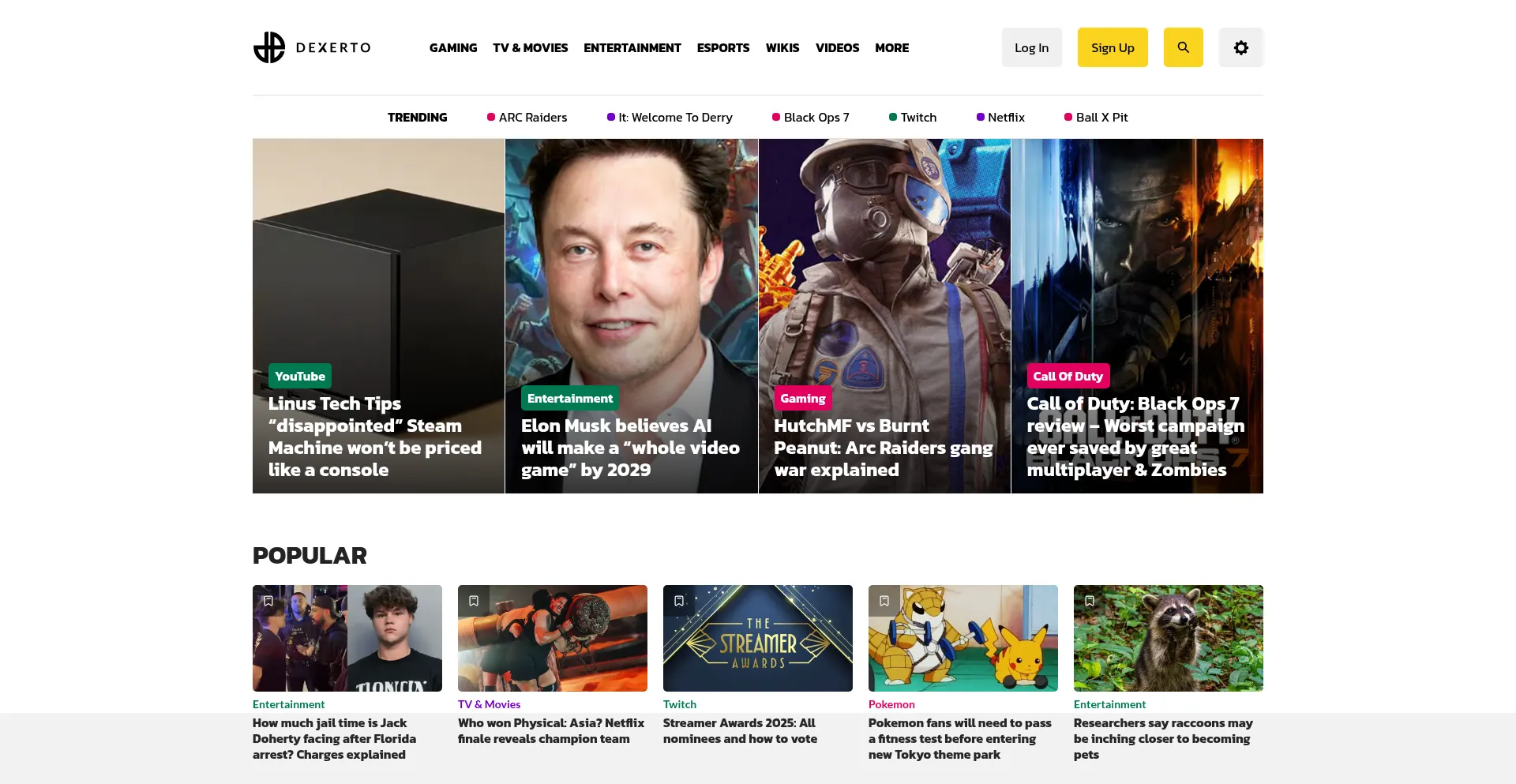 Visit Dexerto for award-winning news, guides, features, and expert reviews across Gaming, TV & Movies, and Entertainment.