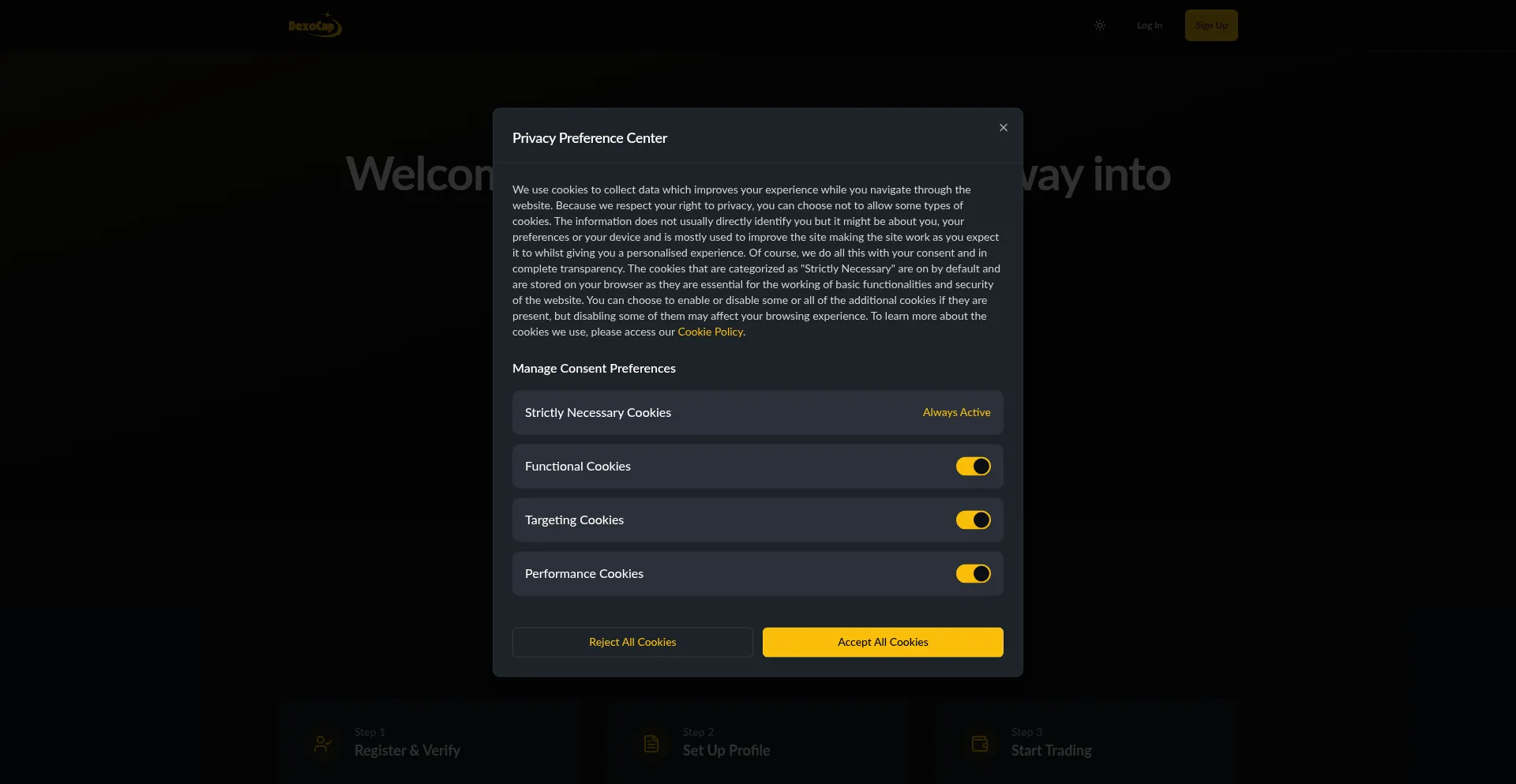 The website implements cookie consent mechanisms in compliance with privacy regulations such as GDPR or CCPA. This demonstrates that dexocap.com adheres to data protection standards and provides users with control over personal data collection practices.