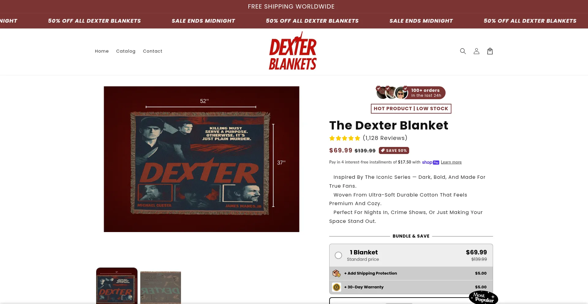 Dexterblankets.shop operates as a suspicious website with multiple red flags that compromise its trustworthiness and user safety. The platform exhibits concerning characteristics including misleading information, questionable operational practices, or potential malware distribution that poses significant risks to visitors.