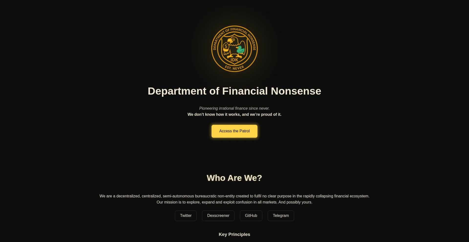 The official home of the Department of Financial Nonsense (DFN). A decentralized, centralized, semi-autonomous bureaucratic non-entity created to fulfil no clear purpose in the ...