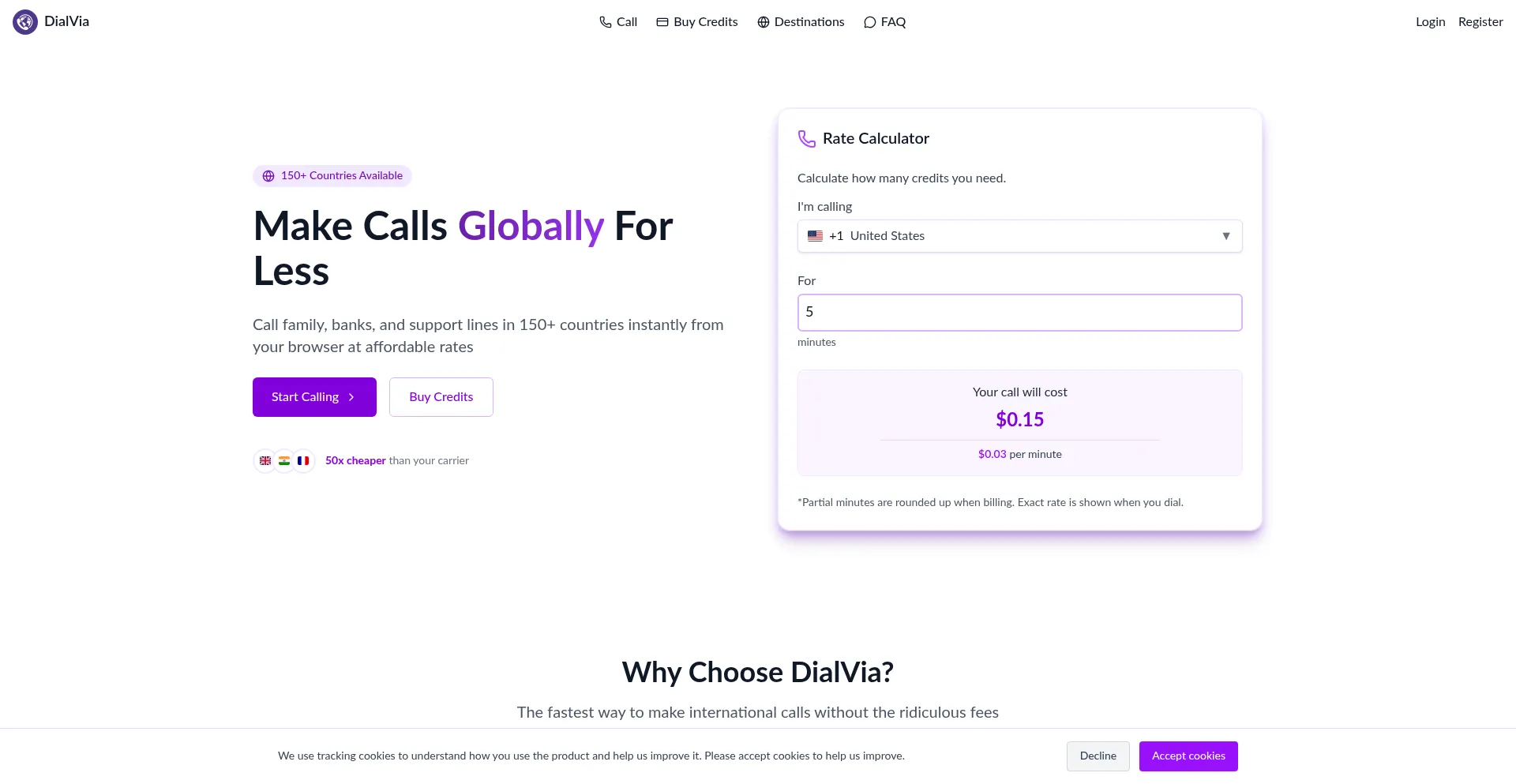 Call mobile and landline numbers in 150+ countries right from your browser. No downloads. No subscription.