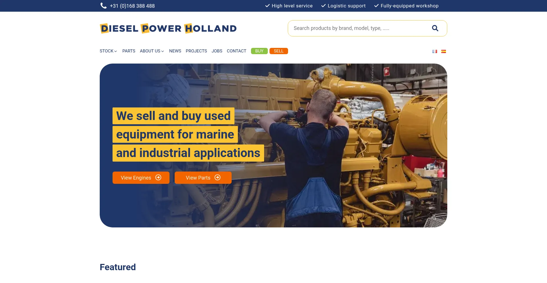 Diesel Power Holland broad range of used and reconditioned engines, generators and parts. Worldwide purchase, sale and overhaul of diesel engines, generator sets and parts.