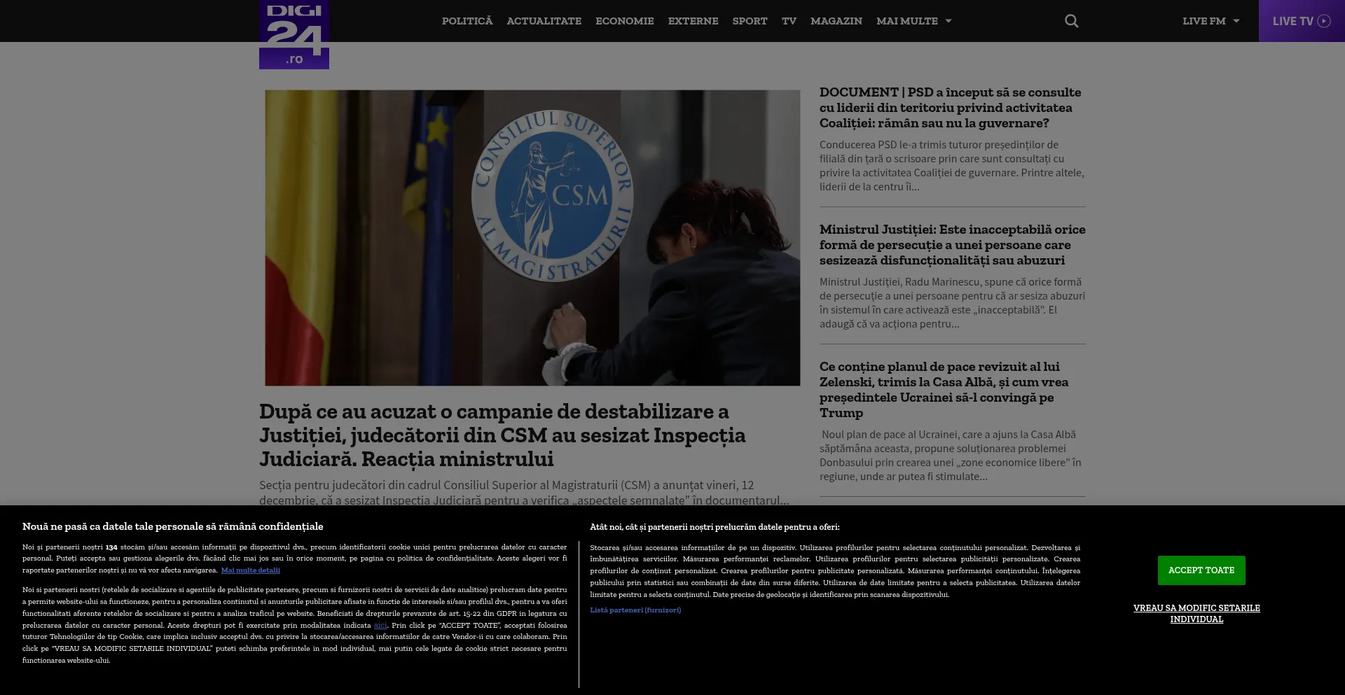 The website implements cookie consent mechanisms in compliance with privacy regulations such as GDPR or CCPA. This demonstrates that digi24.ro adheres to data protection standards and provides users with control over personal data collection practices.