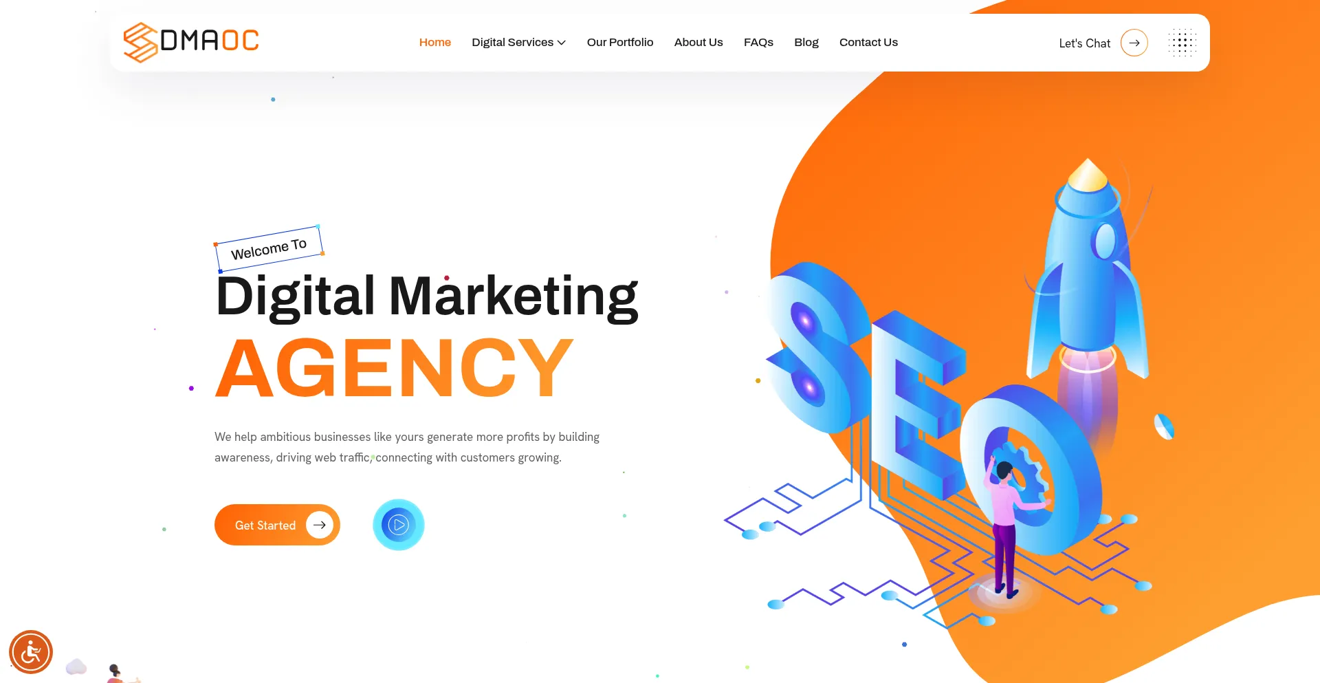 The digitalmarketingagencyoc.com website employs search engine optimization (SEO) techniques to improve its visibility and ranking in search engine results pages (SERPs).