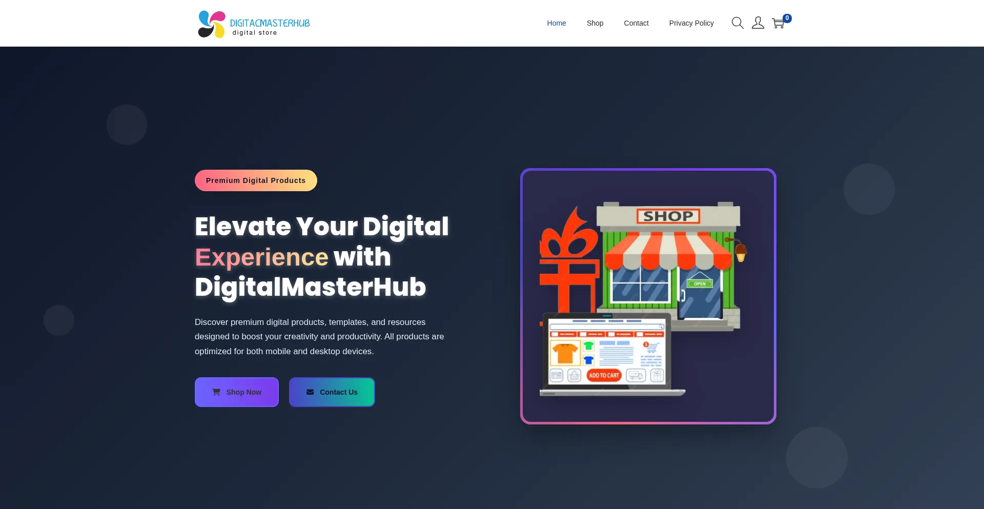 Analysis indicates that digitalmasterhub.store operates as an e-commerce platform facilitating online transactions for goods or services. The website implements shopping cart functionality, payment processing systems, and product catalog features typical of commercial retail operations.
