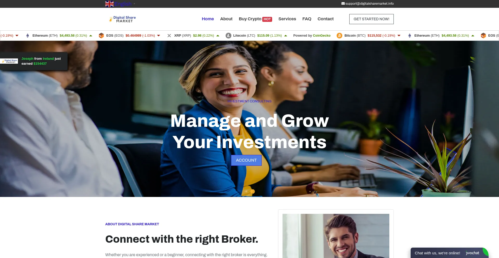 The digitalsharemarket.info website provides financial services including investment management, wealth advisory, or financial planning solutions. Services may encompass portfolio management, investment opportunities, financial consulting, or asset growth strategies for individual and institutional clients.