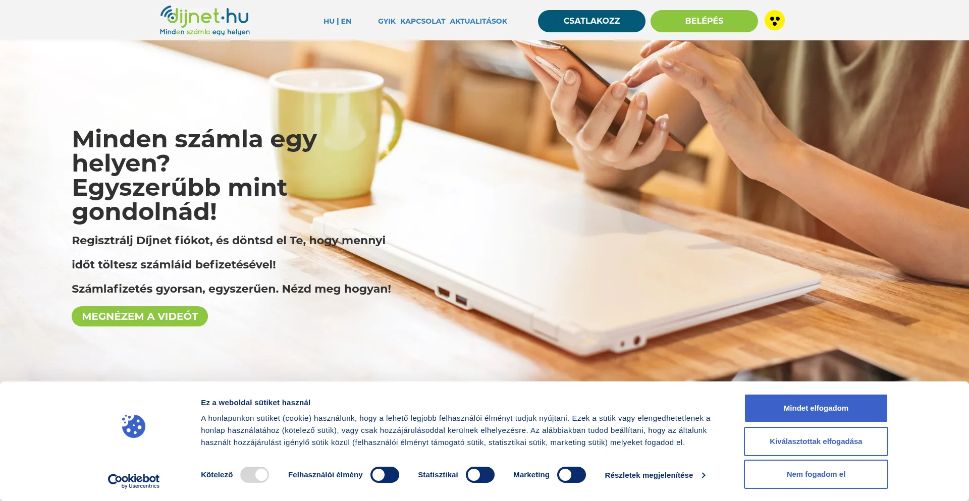 The website implements cookie consent mechanisms in compliance with privacy regulations such as GDPR or CCPA. This demonstrates that dijnet.hu adheres to data protection standards and provides users with control over personal data collection practices.