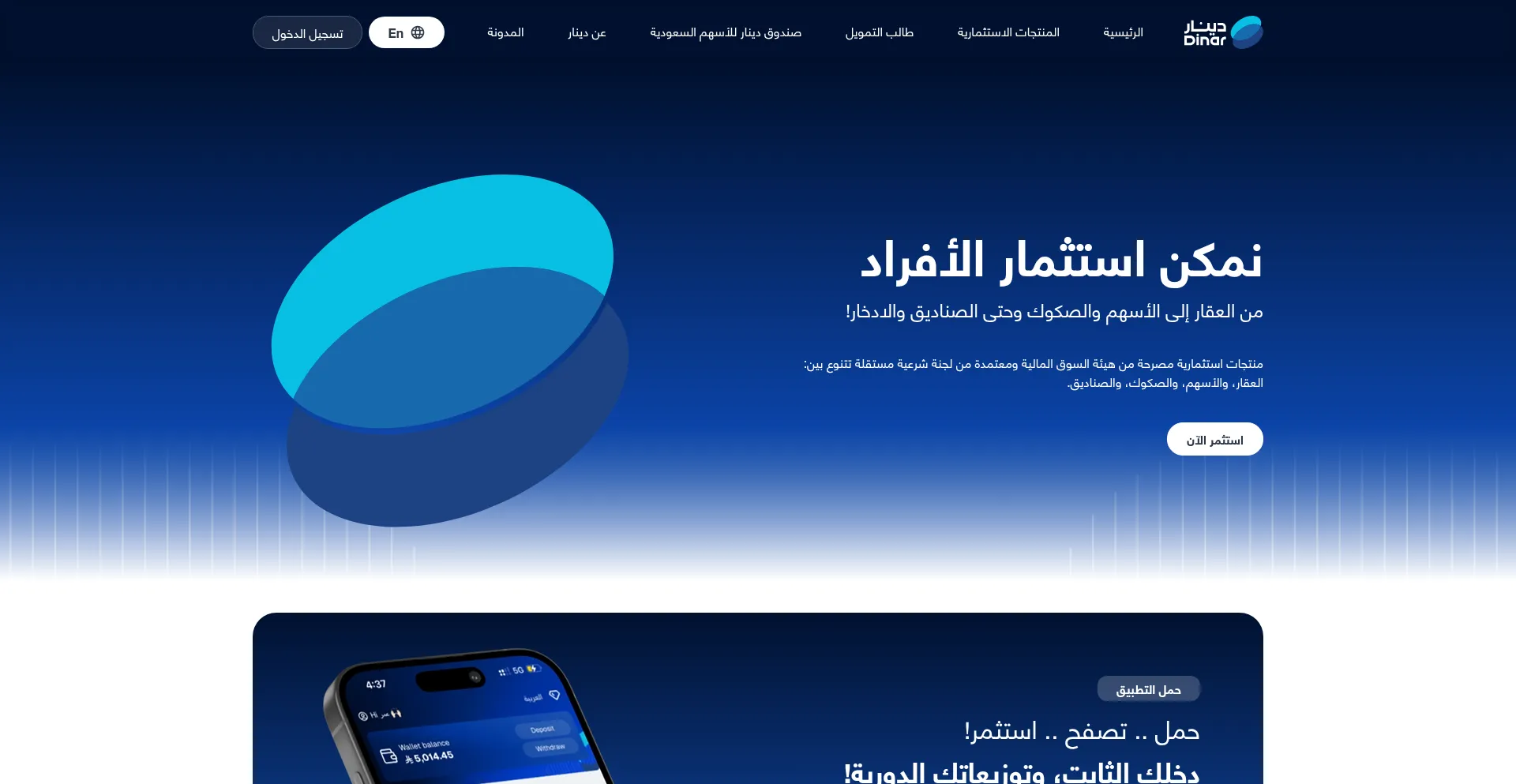 تقدم دينار حلول تمويل مرنة متوافقة مع الشريعة الإسلامية للعقارات ورأس المال العامل والتوسع. ابدأ...