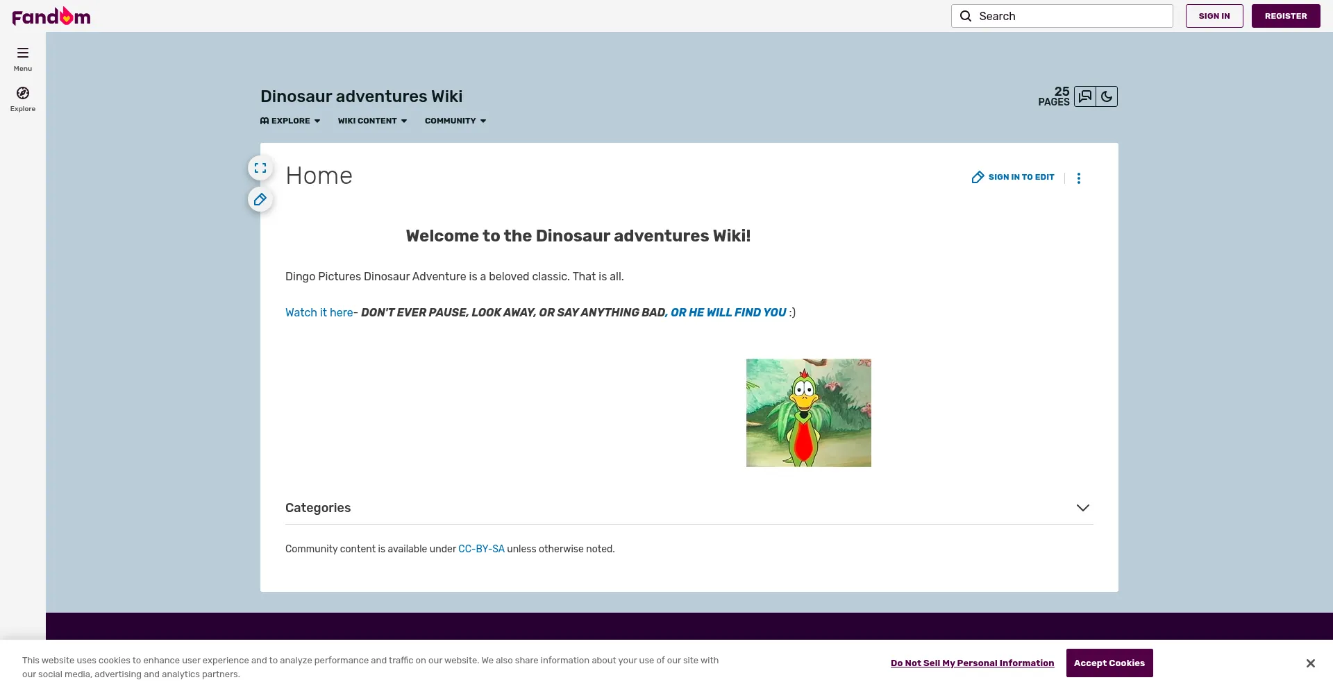 The website implements cookie consent mechanisms in compliance with privacy regulations such as GDPR or CCPA. This demonstrates that dinosaur-adventures-wiki.fandom.com adheres to data protection standards and provides users with control over personal data collection practices.