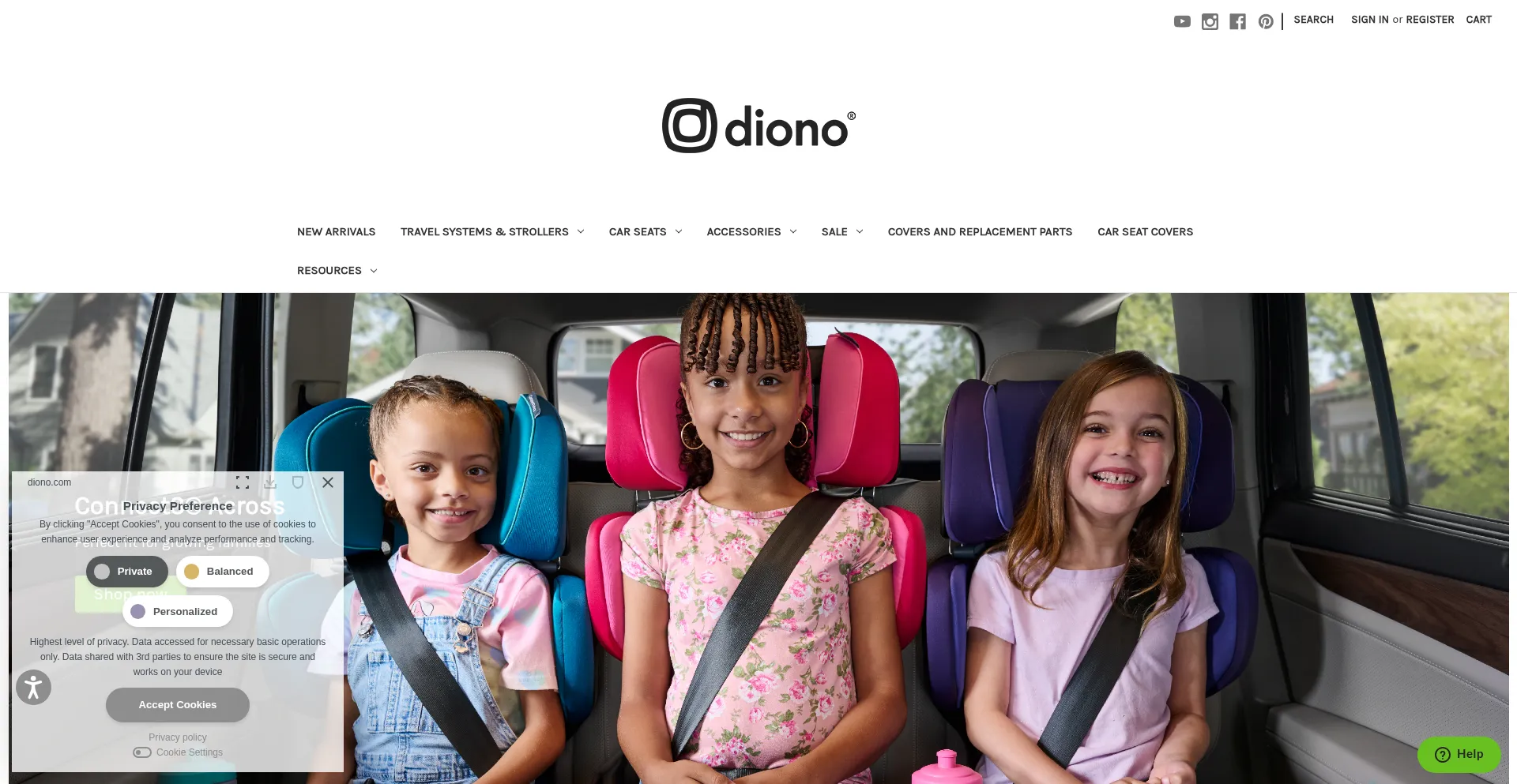 The website implements cookie consent mechanisms in compliance with privacy regulations such as GDPR or CCPA. This demonstrates that diono.com adheres to data protection standards and provides users with control over personal data collection practices.